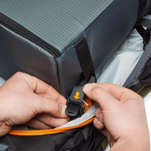A GearUP Pro Camera Boxes (L, XL és XXL) táskákkal való zökkenőmentes együttműködésre tervezve, kivehető, felfüggesztett kamerabetéttel kompatibilis, így további védelmet és stabilitást biztosít a felszerelésnek. A funkcionális hátsó hozzáférés lehetővé teszi a felszerelés gyors elővételét a hátizsák levétele nélkül, míg a hegymászáshoz tervezett funkciók – mint a jégcsákány-hurkok, a kötélrögzítések és a sisak-tartó – ideálisvá teszik a többféle tevékenységet magában foglaló alpesi küldetésekhez.