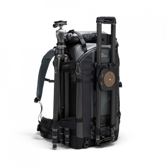 A keresztfunkcionalitás és az egyéni konfiguráció a pántrendszernek, a két mellékelt tartozékhevedernek és a cipzáras, kihúzható állványtartónak köszönhető, amely az elülső zsebben található. Ha két állványt kell szállítania, vagy inkább az oldalsó rögzítést részesíti előnyben, a hátizsák oldalán speciális állványhevederek találhatók. Az elülső és oldalsó rész úgy van kialakítva, hogy sokféle állványt tudjon befogadni, beleértve a Gitzo Systematic méretű modelleket is.