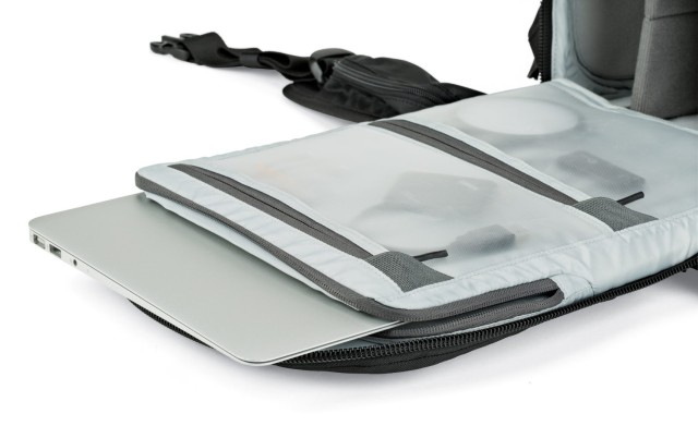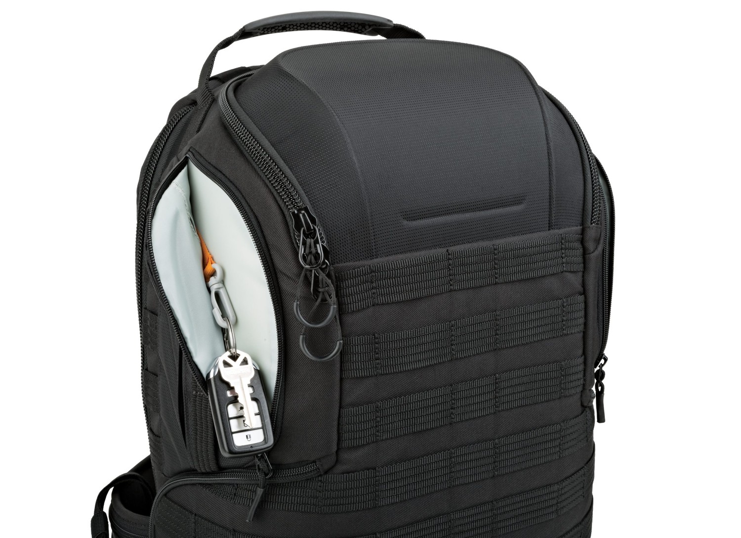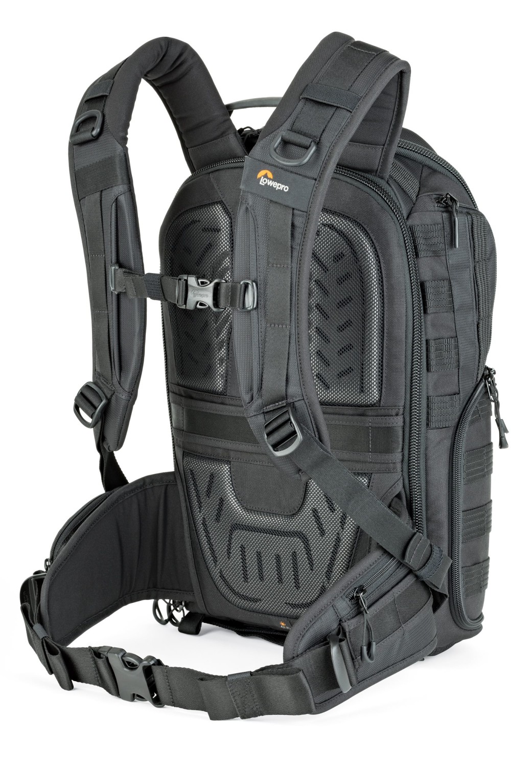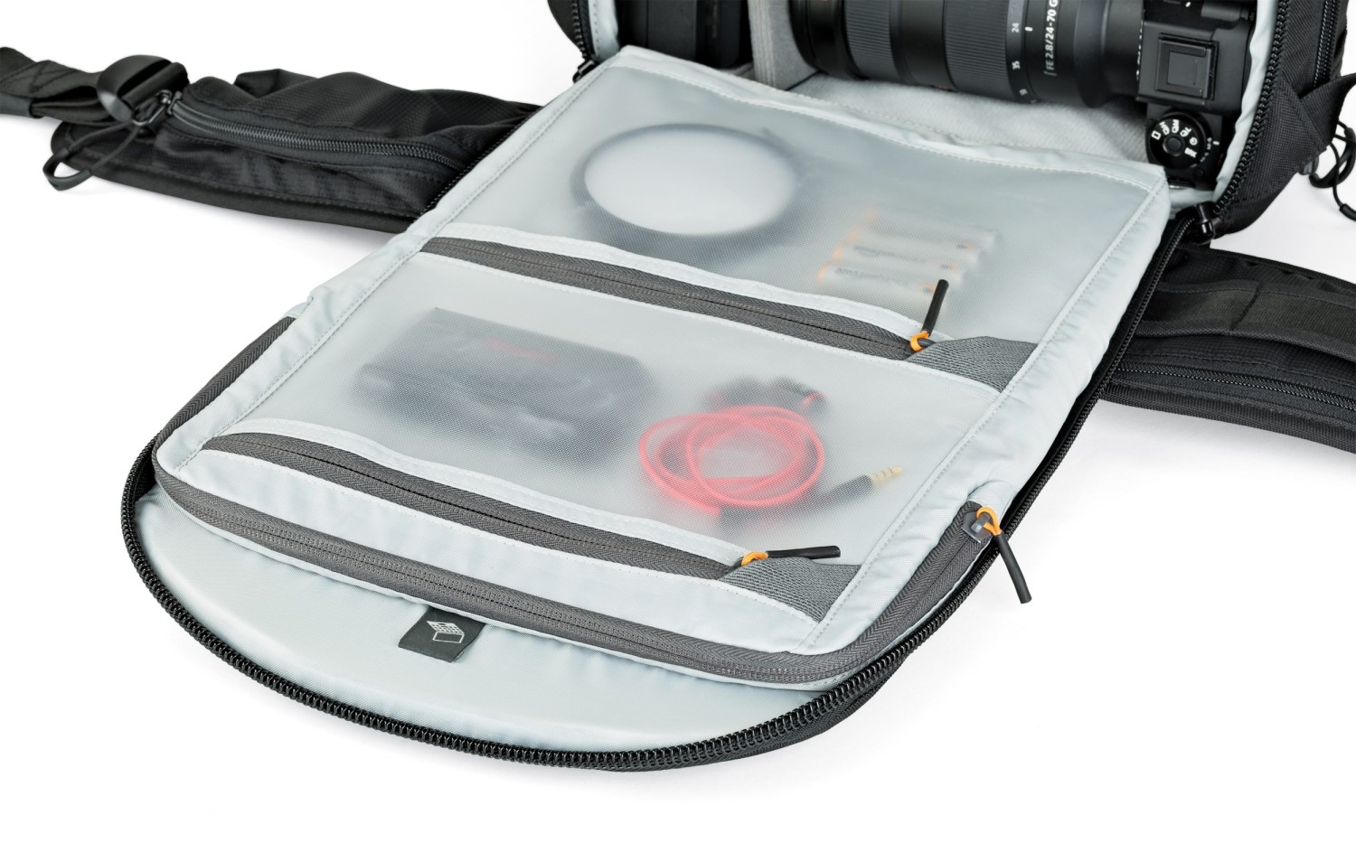 A négy hozzáférési pont – felső nyílás, két oldalsó nyílás és hátsó panel – segítségével a fotósok azonnal elővehetik a megfelelő felszerelést. A moduláris SlipLock™ hevederrendszer korlátlan testreszabási lehetőségeket kínál a mellékelt kiegészítőkkel, mint például a palacktartó, a tok, az állványtartó és a rögzítőhevederek. Az átalakítható deréköv használati övvé alakítható, ami további rugalmasságot biztosít. Belül a CradleFit™ rekesz akár 13 hüvelykes laptopot is véd, míg a fényképezőgép-rekesz egy DSLR-t 24–70 mm-es f/2,8-as objektívvel, akár hat objektívet vagy kiegészítőt, egy tartalék fényképezőgép-vázat vagy egy DJI Mavic 2 Pro/Zoom drónt is befogad.