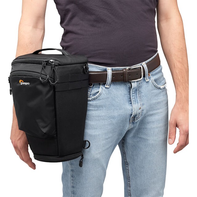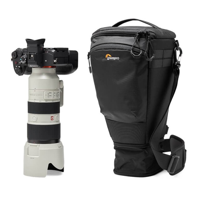 A TopLoader teljes vázas vázhoz, markolattal és objektívvel használható 70-200mm F2.8-ig, az objektív napellenzőjének bővítésével. Kompatibilis a SlipLock tartozékokkal, mint például az objektívtáskákkal