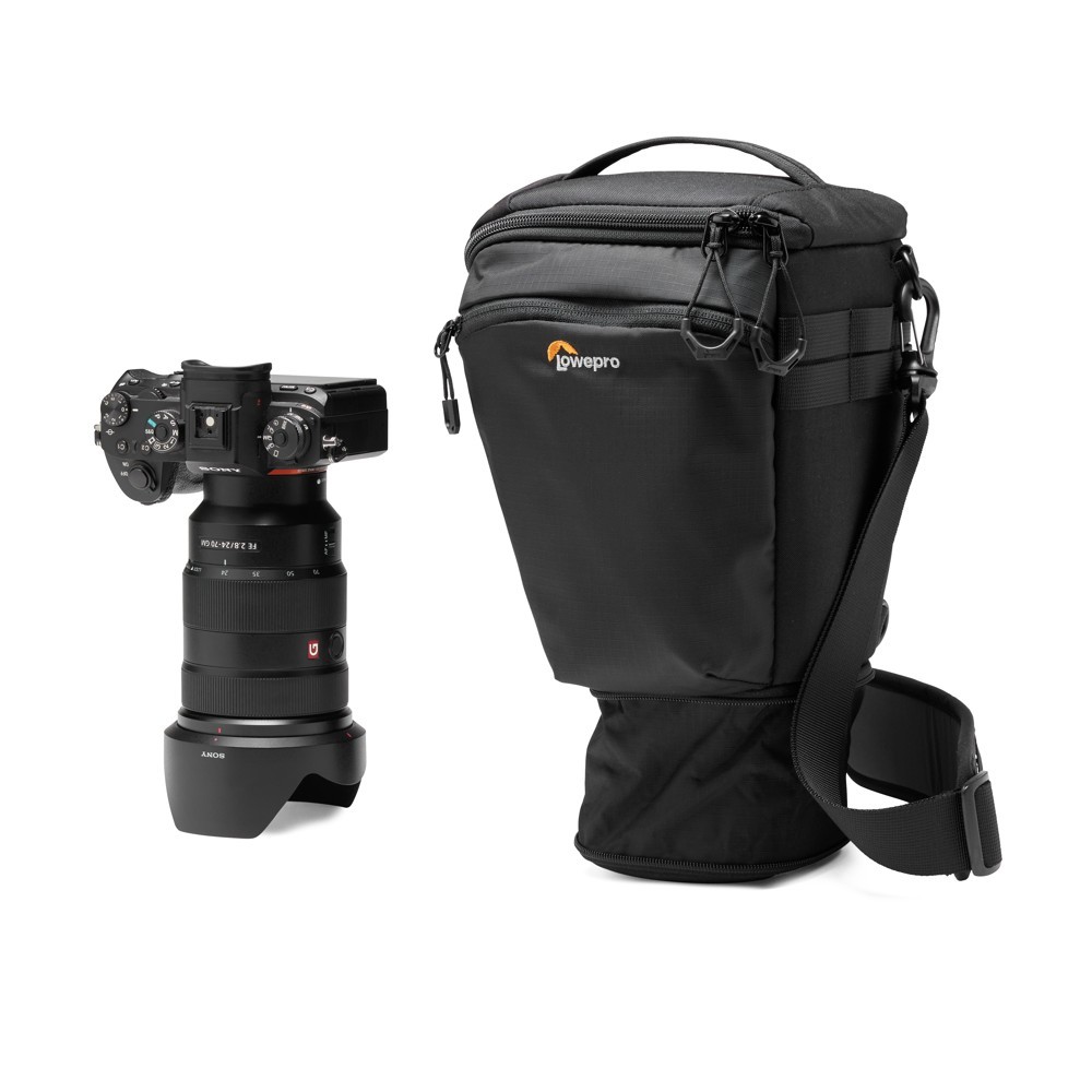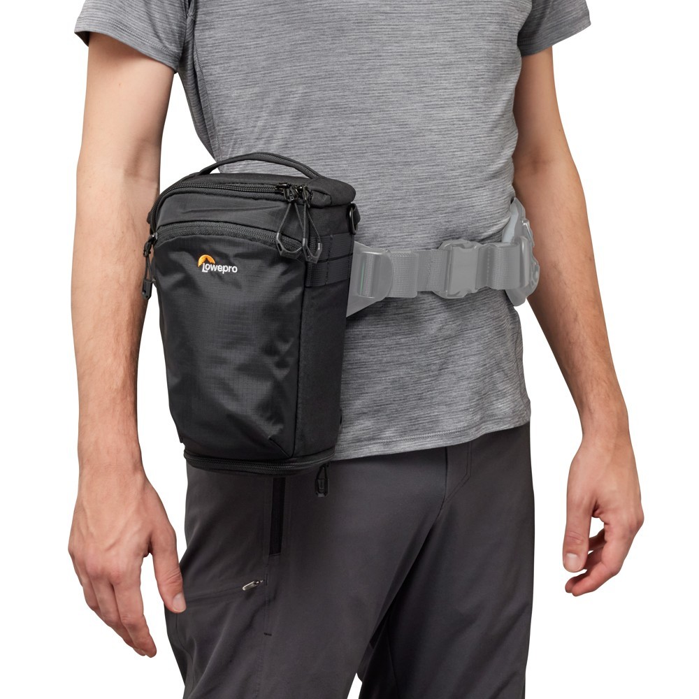 Ez a vékony, felülről nyitható táska sokoldalú hordozási lehetőségeket kínál. Használja az elsődleges és a stabilizáló vállpántokat a szokásos vállon való hordozáshoz, váltson mellkasi hordozásra a gyors hozzáférés érdekében, vagy rögzítse a ProTactic Utility Belt III-hoz, kompatibilis ProTactic övekhez vagy egy szabványos 38 mm-es nadrágövet. A táska SlipLock™ kompatibilis további objektívtokokhoz, lehetővé téve a fotósok számára, hogy útközben bővítsék rendszerüket.