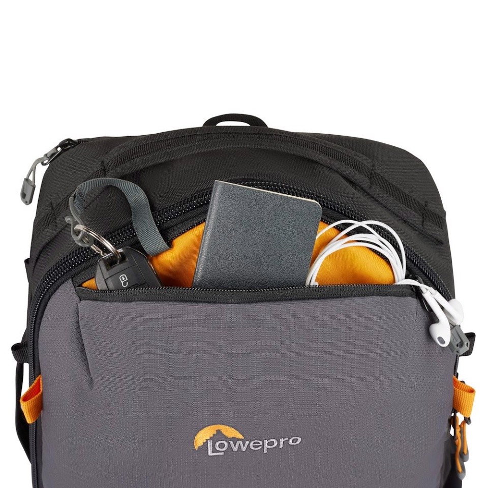 Šedý batoh Lowepro Trekker Lite BP 150 AW AW Backpack s kapacitou 18,5L má měkkou konstrukci, oddělené přihrádky a přizpůsobitelné vložky. Tento batoh pojme fotoaparát Sony a6000 nebo podobný fotoaparát s nasazeným objektivem, dva malé objektivy nebo nabíječku a baterii. Alternativně pojme dron DJI Mavic Air 2 nebo podobný dron.