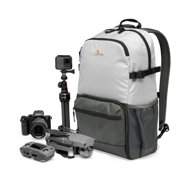 Tartsa fényképezőgépét és személyes tárgyait biztonságban szállítás közben a szürke Lowepro Truckee BP 250 LX Camera Backpack hátizsákban, amelynek 18 literes űrtartalma van.