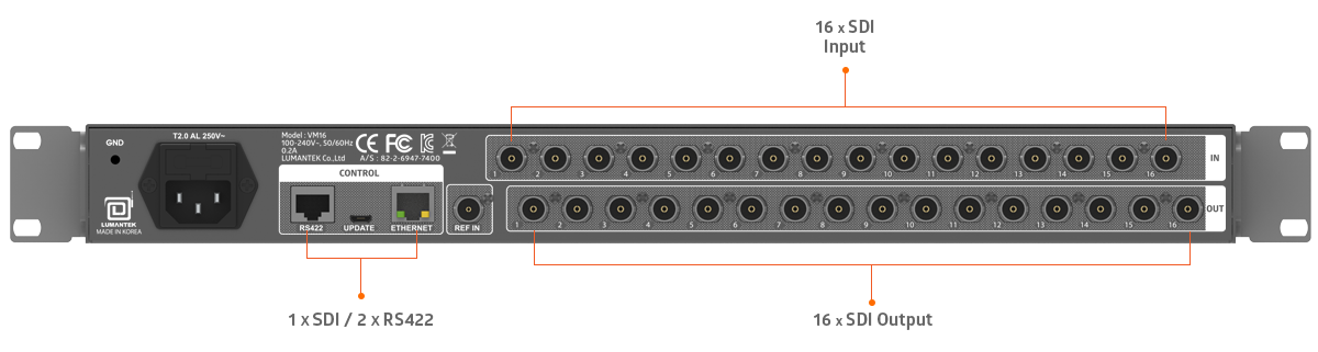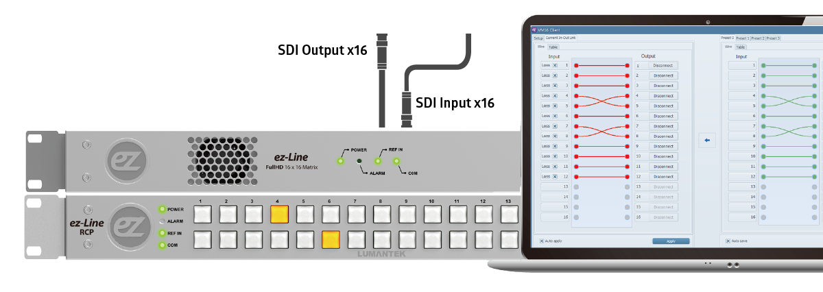 az ez-Line Router VM16 egy 16 x 16 SD/HD/3G SDI jeleket támogató router. A VM16 éles és tiszta jelek küldésére képes, így osztó és szelektor is lehet.