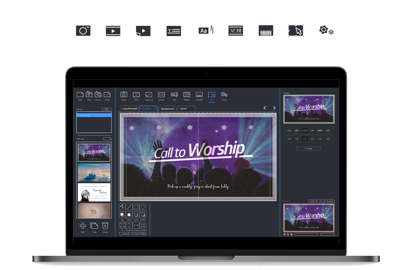 az ez-DSK lehetővé teszi feliratok, képek, szekvenciák, videók és widgetek egyszerű alkalmazását a videoprogramon keresztül.