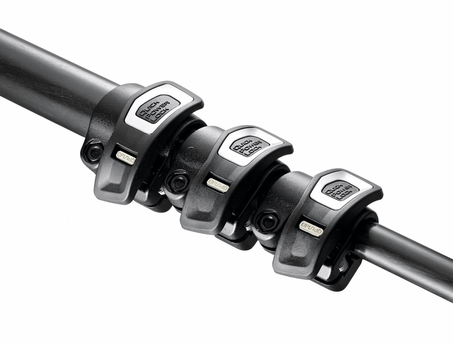A 055XPRO4 állvány lábai rendkívül erősek, és a Quick Power Lock segítségével egyszerűen beállíthatók és kinyithatók. Ez a robusztus rögzítőmechanizmus minden lábszakaszt rögzít vagy old, így azok egyetlen mozdulattal kinyithatók, és ergonómikus láb szögválasztókkal rendelkeznek a maximális erősség érdekében.