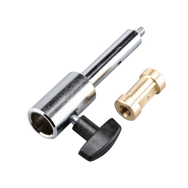 A Manfrotto 016 egy nagy teherbírású, 16 mm-es (5/8″ Baby) acél női adapter 3/8″-16-os férfi tengellyel, amelyet kifejezetten Broncolor vakufejek vagy bármely más, 16 mm-es női csatlakozóval rendelkező lámpa rögzítésére terveztek szabványos 3/8″-os csapokra (Super Clamp, Magic Arm, állványfejek, C-állvány karok stb.). 140 g súlyával és 57 mm hosszával ez a klasszikus adapter minden professzionális világítási készletben megtalálható.