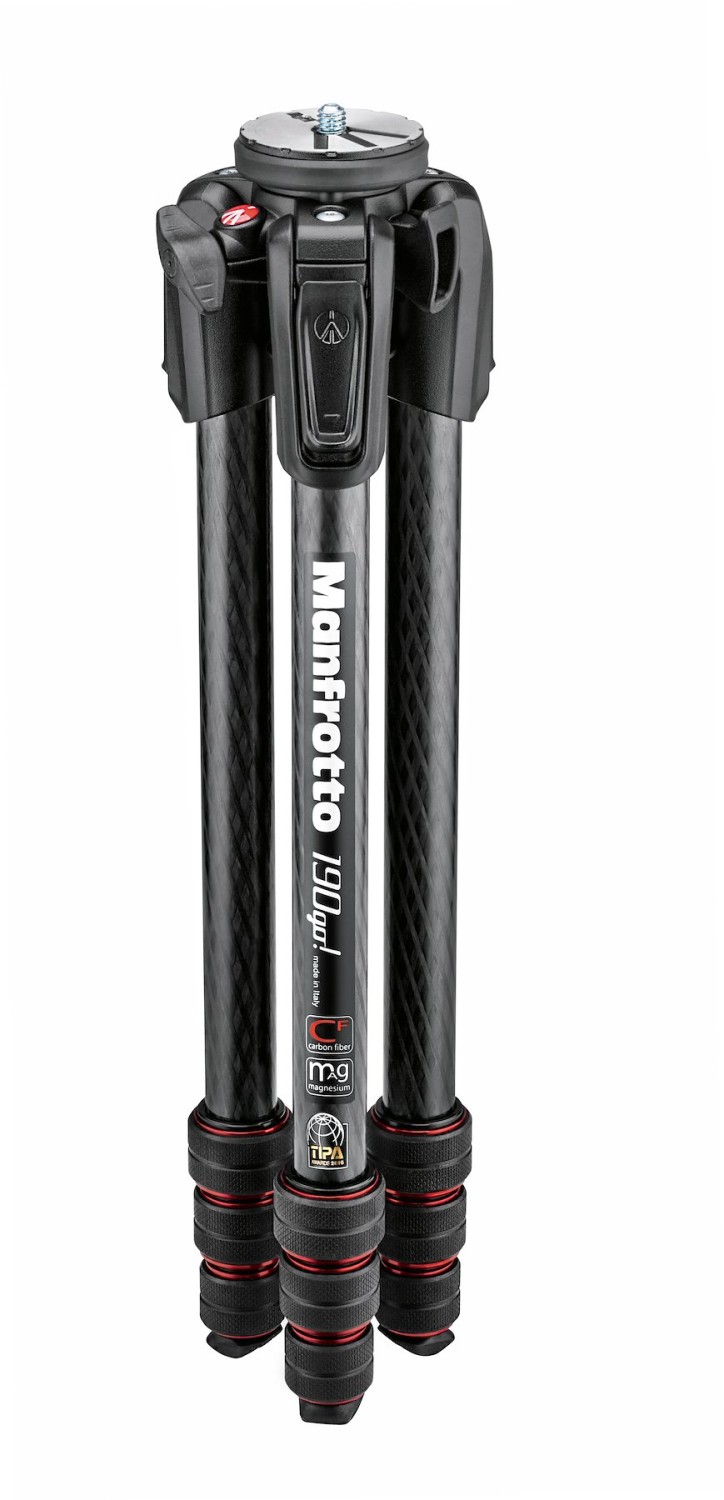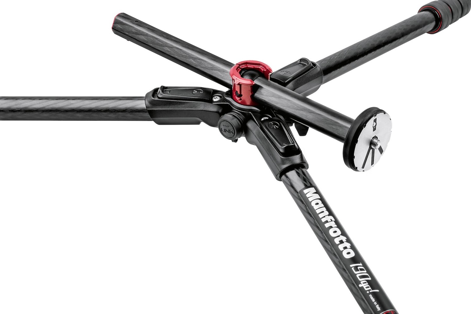 Stativ má také vestavěný mechanismus naklápění sloupku o 90°, který zůstává bezpečně uložen, dokud není potřeba. Když je potřeba použít středový sloupek, stačí ho zvednout jedním prstem a nechat vyklopit do vodorovné polohy. V kombinaci se čtyřmi možnými úhly nohou stativu poskytuje tento mechanismus dokonalou stabilitu při focení na nerovném terénu.Nové 190go vděčí za svůj profesionální status především novým karbonovým trubkám. Karbonové nohy tohoto stativu jsou dokonalou kombinací maximální lehkosti a stability.