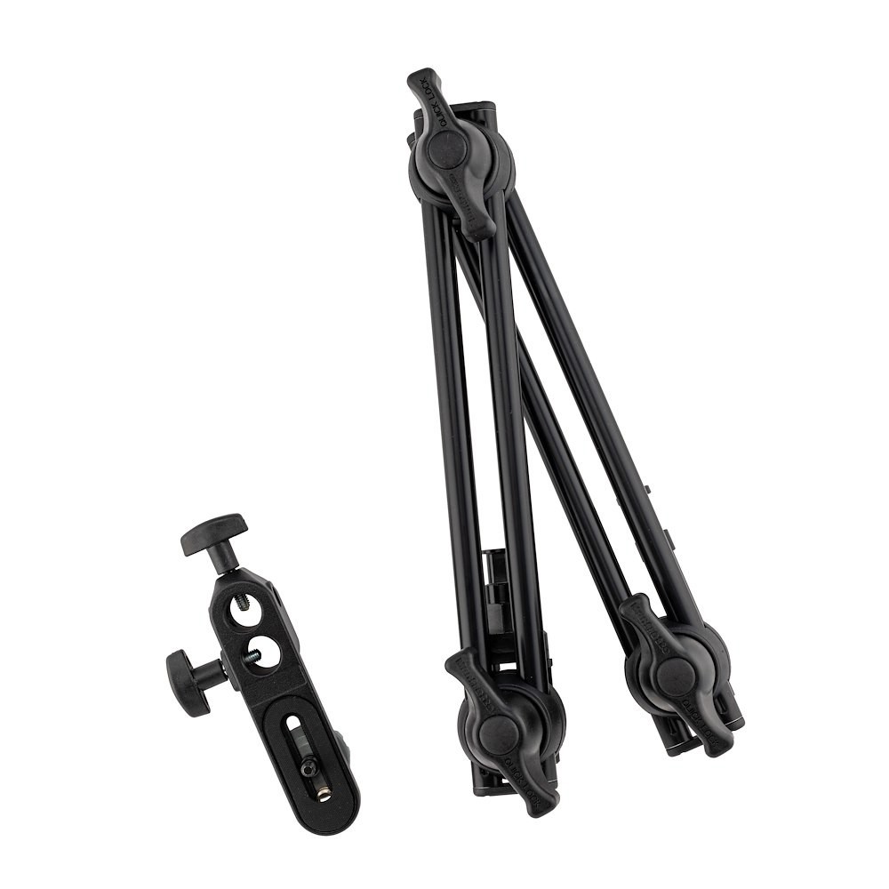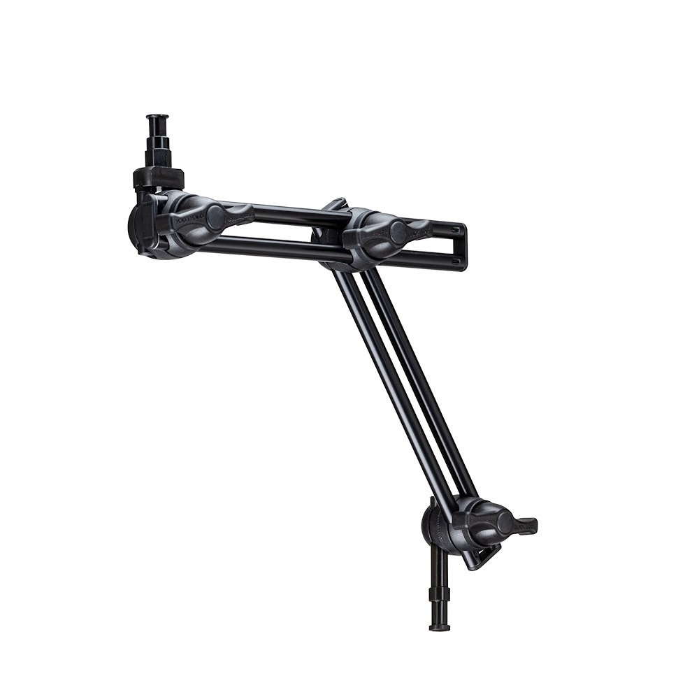 A Manfrotto 396B-2 két csuklós szakasszal rendelkezik, csúszó hosszabbítással, amely ergonómikus gyorskioldó karokkal azonnal rögzíthető, és 62,5 cm-es magasságot ér el, így pontos felülnézeti, oldalirányú vagy alacsony szögű beállításokhoz használható. A felső kameratartó 3/8"-16 belső menettel és 16 mm-es baby csapszeggel rendelkezik, míg az alsó csapszeg hexagonális forgásgátló profilt (Super Clamp kompatibilis) és univerzális 16 mm-es kerek szakaszt kombinál állványokhoz vagy bilincsekhez. Az 5 kg teherbírású, fekete eloxált alumínium váz ellenáll a hajlításnak és a kopásnak, így ideális termékfotózáshoz, videó megfigyeléshez vagy gaffer munkához LED panelekkel, speedlightokkal vagy kis kamerákkal – kompakt, erős és végtelenül állítható.
