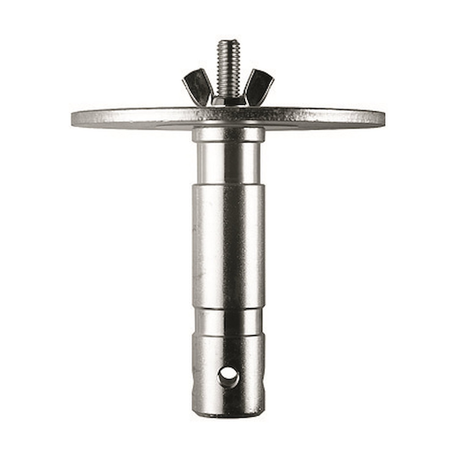 A Manfrotto 163-10 egy professzionális cink-acél adapter, amely bármilyen M10 belső menetes csavart vagy anyát szabványos 28 mm-es (1-1/8″) Junior befogadócsappá alakít, amely az iparági szabvány a nehéz stúdióvilágítások, nagy softboxok és felső pillangókeretek esetében. 12 cm-es négyzet alakú alaplemeze kiváló stabilitást biztosít, ha padlóhoz, almásdobozokhoz vagy fali lemezekhez csavarozzák, míg a 14,5 cm-es teljes magasság bőséges helyet biztosít a szerelvények számára. Tartós krómozott cinkacélból készült, súlya 0,75 kg, és úgy tervezték, hogy abszolút megbízhatósággal bírja a legnehezebb szerelési feladatokat film-, televíziós és fotóstúdiókban.