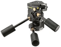 A Manfrotto Manfrotto 3 Way Tripod Head Mark II egy pehelykönnyű, 750 g-os olasz háromirányú fej, amelynek ergonómikus gumi karjai síkba hajthatók, 200LT-PL-PRO gyorscsatlakozóval 4 kg-os DSLR-t rögzíthet, és egy kézzel pontosan rögzíthető portré- vagy makrószögekhez. 360°-os forgatás, ±90°-os dőlés, vízmérték – tiszta, félig professzionális erő egy 12 cm-es polimer téglában.