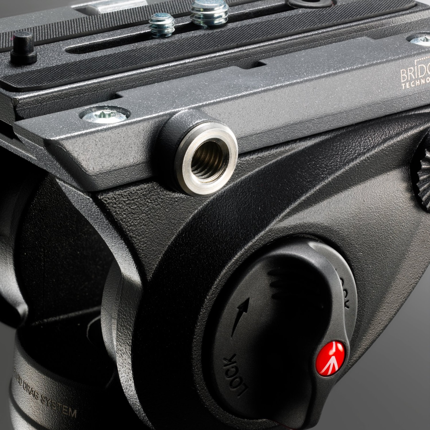 A videófej professzionális folyadéktartályokkal rendelkezik mind a pásztázó-, mind a dőléstengelyen, hogy minden kameramozgás egyenletes, ellenőrzött és pontos legyen. A Manfrotto sikeres Bridging Technology™ termékcsaládjának legkompaktabb feje.