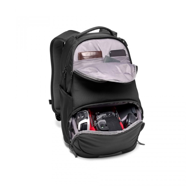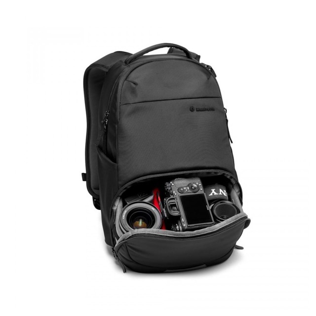 A Manfrotto Advanced Active Backpack III hátizsákot DSLR és tükör nélküli fényképezőgépek és a laptop számára egyaránt tervezték. Az Active hátizsák tetején külön tárolóhely van a személyes tárgyaknak, az alsó rekeszben pedig a fotós felszerelésnek, gyors elülső hozzáféréssel.