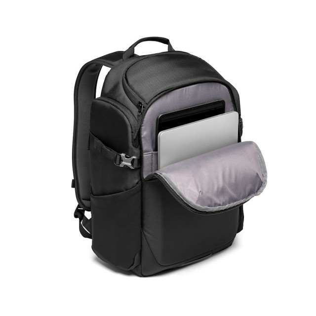 A Manfrotto Advanced Befree Backpack III (MB MA3-BP-BF) egy sokoldalú, 25 literes fényképezőgép-hátizsák, biztonságos hátsó hozzáféréssel a felszerelés jobb védelme érdekében, külön rekeszekkel 15 hüvelykes laptop és 9,7 hüvelykes tablet számára, helyet egy DSLR vagy tükör nélküli fényképezőgépnek 70-200 mm-es f/2,8-as objektívvel és további objektívekkel, bővíthető oldalsó állványzseb, repülőgépen való szállításra alkalmas, vízlepergető anyag és esővédő burkolat.