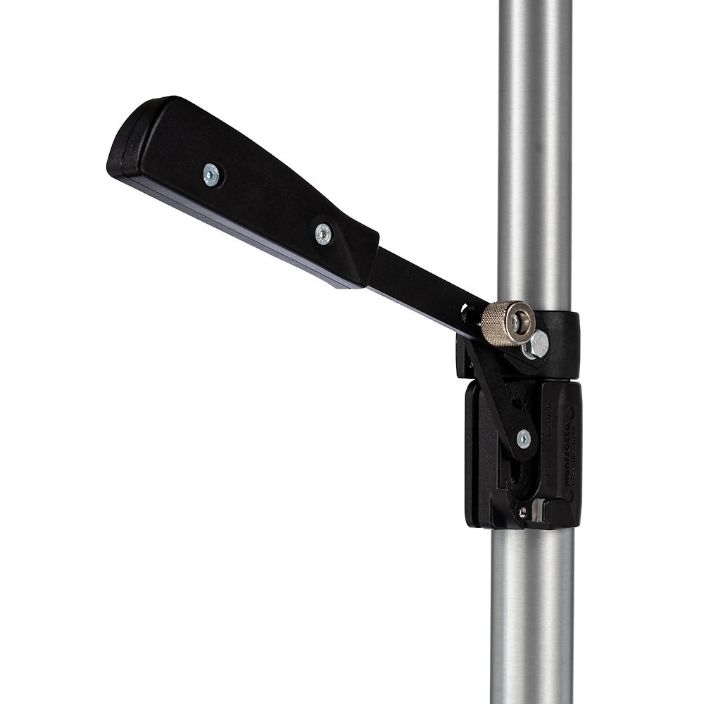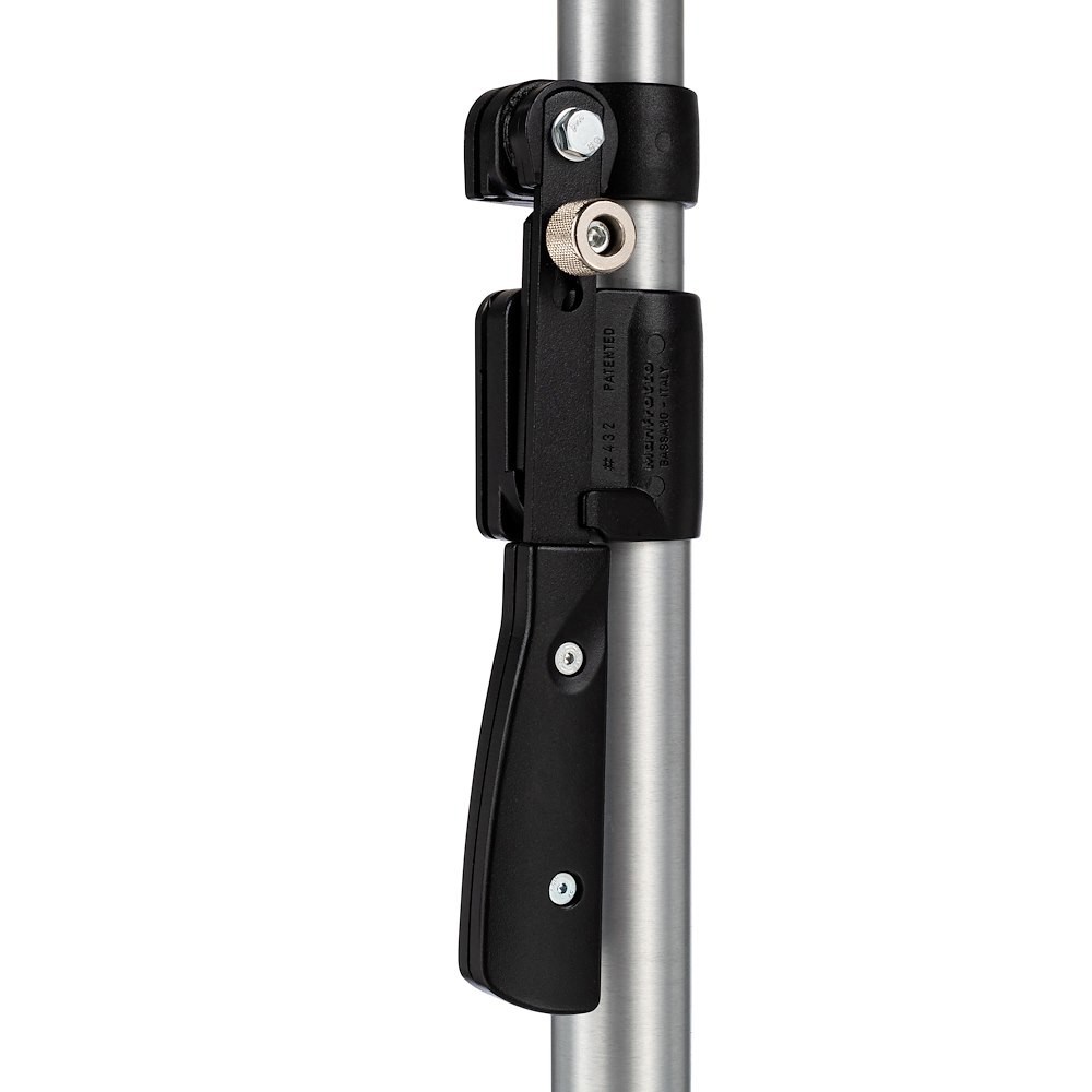 A Manfrotto 432-3,7 Autopole Two egy karcsú, 210–370 cm-es feszítő rendszerrel helyettesíti a terjedelmes állványokat. A biztonsági retesszel ellátott konzolos kar másodpercek alatt kinyújtja az alumínium csövet (Ø45/40 mm) a padló és a mennyezet között, míg a nagy gumibakok (Ø60 mm) sima vagy texturált felületeken is megfogják anélkül, hogy károsítanák azokat. A luxus kétállású tolómechanizmus finom vagy durva beállítást kínál a tökéletes feszesség érdekében. Mindössze 2,5 kg-os súlyával és 210 cm-es összecsukott hosszával ez a legjobb megoldás sima papír, szövet háttér vagy felső rácsokhoz kis stúdiókban.