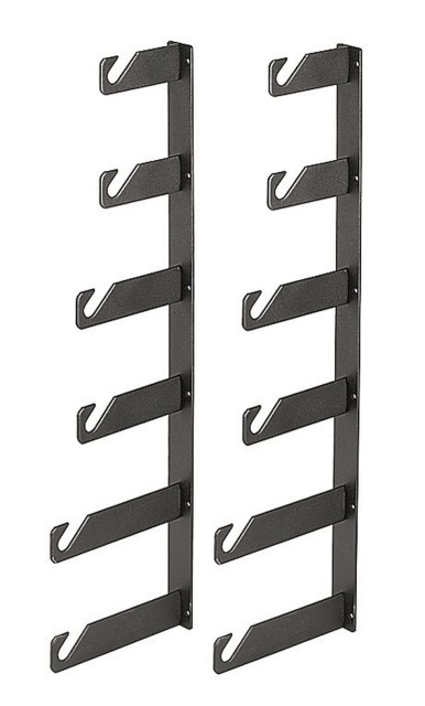 A Manfrotto 045-6 háttér tartó kampók egy 4,2 kg-os, két acél fali konzolból álló készlet, amely legfeljebb hat Expan 046 meghajtót képes megtartani, és a mellékelt rögzítőcsavarokkal egy állandó, létra nélküli stúdió háttérrendszert biztosít a sima papír- vagy szövettekercsekhez.