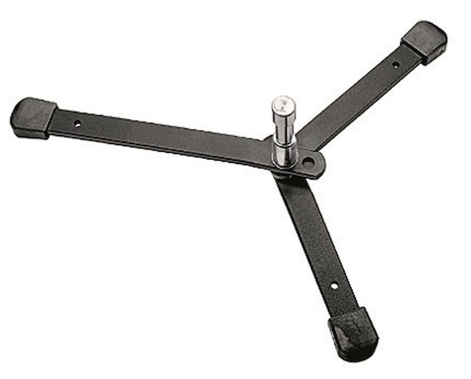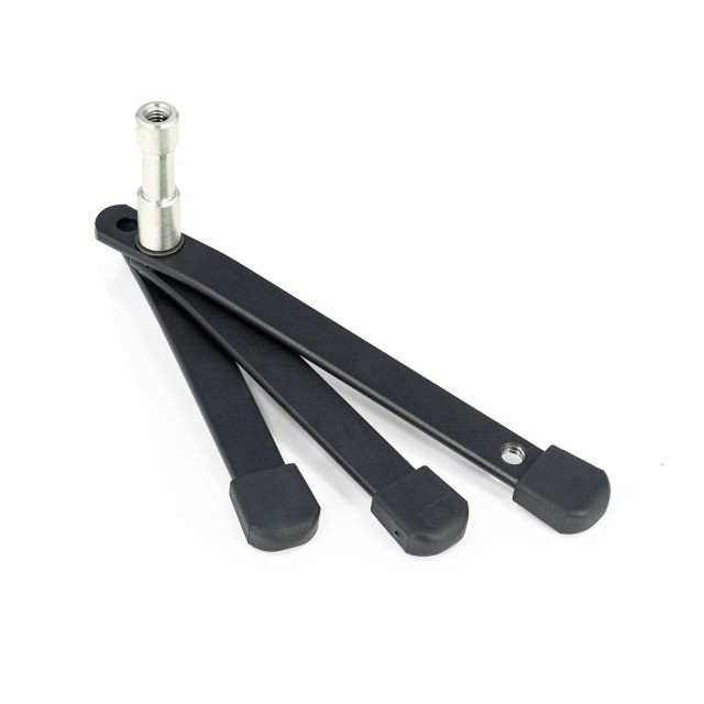 A Manfrotto 003M Mini Backlite állvány egy 520 g-os acélpóka, amelyet sziklaszilárd támasztéknak terveztek, rögzített 9,7 cm-es magassággal. A három téglalap alakú láb 50 cm-es alapterületet képez, mindegyikben egy fúrt lyukkal, amelynek segítségével a padlóhoz szegezhető, a falhoz csavarozható vagy a mennyezethez rögzíthető – tökéletes állandó stúdióberendezésekhez vagy helyszíni felvételekhez. A 16 mm-es (5/8") biztonsági csapos rögzítőelem akár 10 kg-ot is elbír, így ideális kis fresnel lámpák, LED panelek vagy kontúrvilágításokhoz. Fekete porfestett felülete ellenáll a korróziónak, így ideális választás film-, fotó- vagy videós stábok számára, akiknek diszkrét, megbízható rögzítésre van szükségük magasságállítás nélkül.