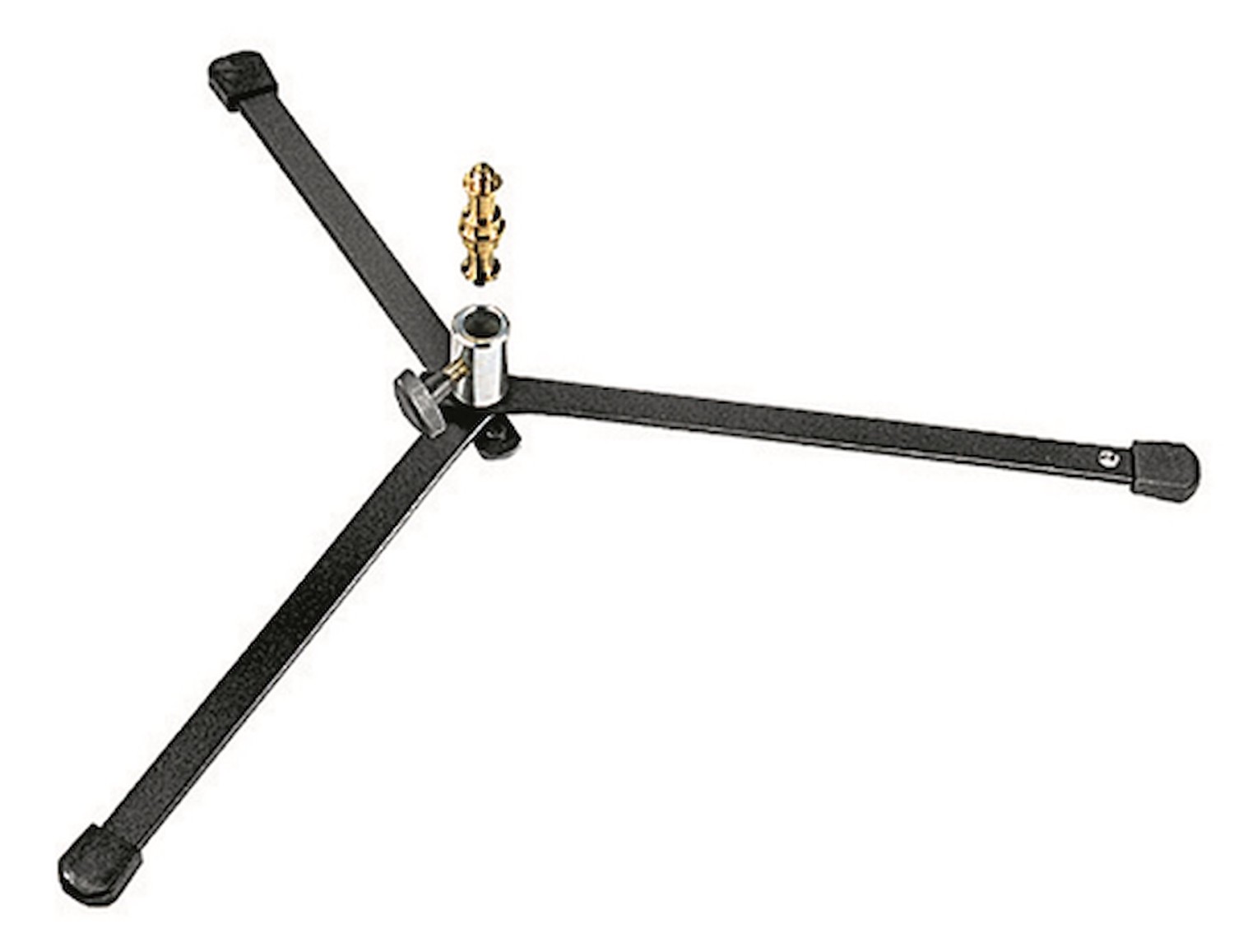 A Manfrotto 003 Backlite állvány alapja egy 500 g-os, fekete porfestett acél pók, három összecsukható lábbal, amelyek tároláshoz 34 cm-re összecsukhatók. A 60 cm-es talpfelület 15 kg-os pontterhelés mellett is stabilitást biztosít, míg a központi 16 mm-es (5/8") női karima bármilyen szabványos baby stud vagy oszlop (pl. C-állvány emelő) befogadására alkalmas. A mellékelt 013 adapter (1/4"-20-5/8") lehetővé teszi a kamera vagy kis lámpa közvetlen felszerelését. Tökéletes peremvilágításhoz, kickerekhez vagy termékasztalokhoz stúdiókban vagy olyan helyeken, ahol a magasság minimális és a padlófelület szűkös – párosítsa egy rövid rúddal a magasság állíthatóságához.
