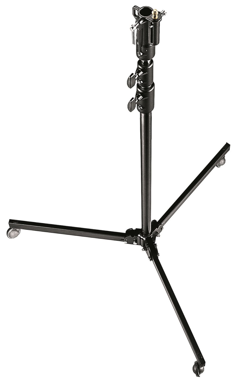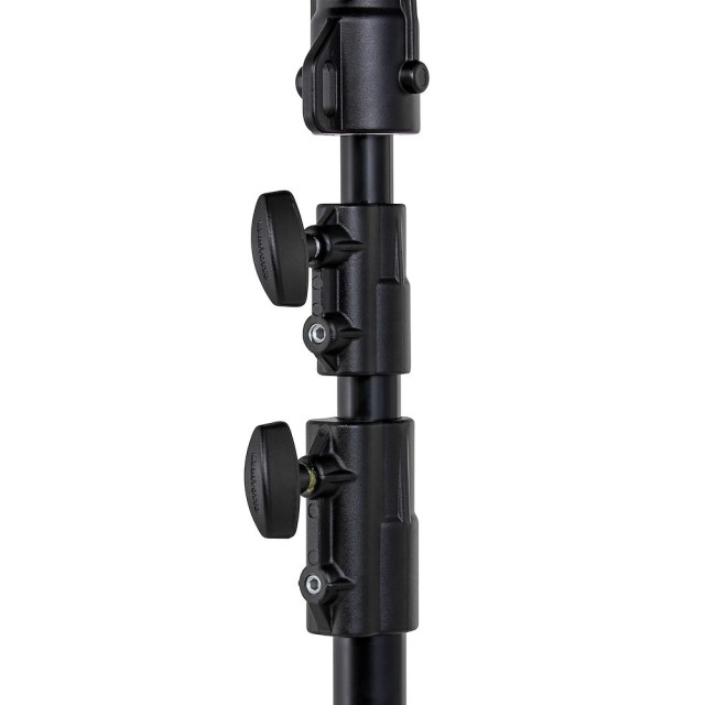 A Manfrotto 298B fekete alumínium 3-részes stúdióállvány egy 6 kg-os professzionális világítási állvány ezüst eloxált alumínium oszlopokkal (35/30/25 mm), fekete acél összecsukható talppal fékezett kerekeken, egy szintező lábbal és 15 kg teherbírással (5 kg teljes 300 cm-es kinyújtásnál) – stabil, mobil támaszt nyújt közepes méretű stúdióvilágításokhoz, softboxokhoz vagy felső szerelvényekhez.