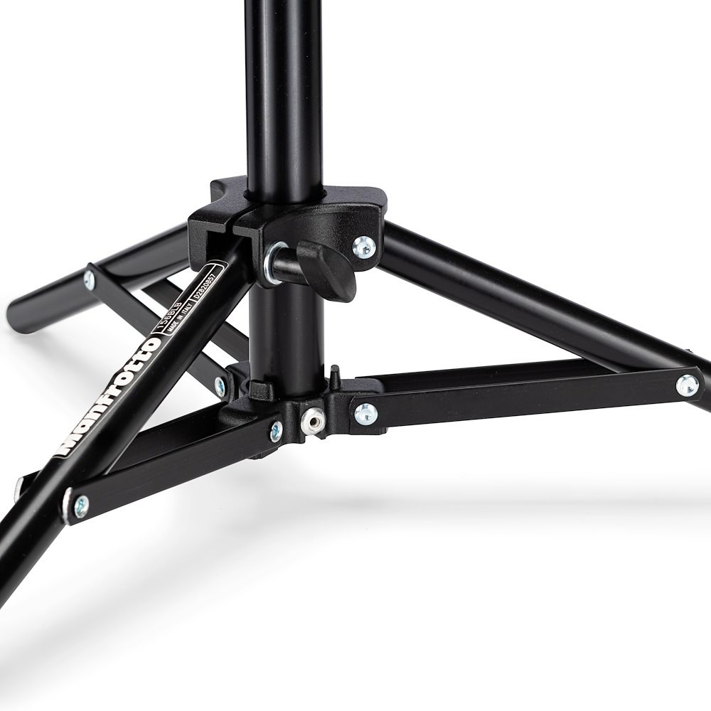 A Manfrotto 156BLB fekete alumínium Mini Pro állvány egy 620 g-os, 4 részes (3 emelővel) ultrakompakt asztali állvány, amely 40 cm-re összecsukható, 123 cm-re kihúzható, és 1,5 kg-ot képes megtartani 5/8" (15,9 mm) baby stud + levehető 1/4"-20 csúccsal – könnyű, merev, alacsony szögű támasztást biztosít kis lámpák, kamerák vagy módosítók számára szűk helyeken.