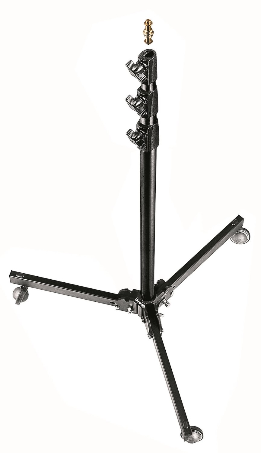 A Manfrotto 299B egy nehéz fekete acél pókalapzatot kombinál három könnyű alumínium szakasszal és két emelővel. A téglalap alakú lábak rendkívüli oldalirányú stabilitást biztosítanak, a szintező láb kiegyenlíti az egyenetlen padlót, a kiváló minőségű 80 mm-es fékes kerekek pedig emelés nélkül is sima áthelyezést tesznek lehetővé. A tetején egy 17,5 mm-es aljzat, valamint 3/8″ és 1/4″ menetek találhatók, és általában a klasszikus Manfrotto Art. 013 Baby-to-Junior adapter is mellékelve van. 4,8 kg-os súlyával könnyen mozgatható, mégis sziklaszilárd a stúdióban való használat során.