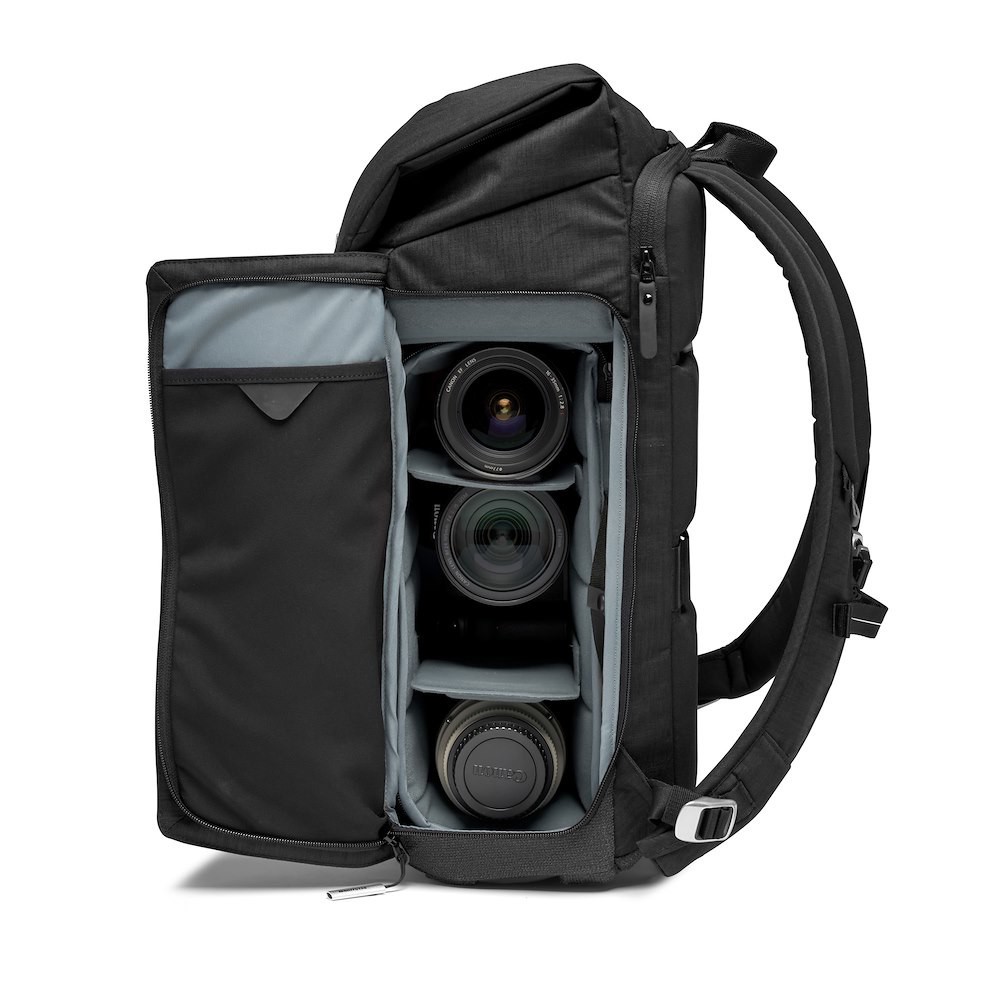 A Chicago Medium a Manfrotto zászlóshajója a városi fényképezőgép-hátizsákok között: prémium anyagok, intelligens moduláris kialakítás és komoly védelem. A kivehető, párnázott fényképezőgép-tartó egy markolatú DSLR vagy tükör nélküli fényképezőgépet tud befogadni objektívvel együtt, plusz legfeljebb négy további objektívet, és másodpercek alatt kivehető, így egy tiszta, 18 literes napizsákot kapunk, vagy önmagában válltáskaként is használható. A hátsó laptoprekesz 15 hüvelykes eszközöknek megfelelő, az oldalsó fedlapokon zseb található a kézi gimbalok számára, az oldalán lévő rugalmas zsebekben pedig vízpalackok helyezhetők el. Az elülső állványrögzítő rendszer három különböző hordozási pozíciót kínál, a táska teljes külseje vízlepergető, és esővédő burkolattal is rendelkezik.
