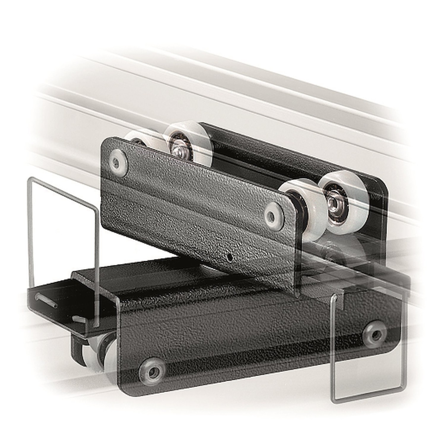 Ez a kettős kocsi két független fékrendszerrel van felszerelve. A felső fék szilárdan rögzíti a kocsit a rögzített sínekhez, megakadályozva a nem kívánt mozgást működés közben. Eközben az alsó kocsi fék rögzíti a mozgó sín csúszó mozgását, biztosítva a pontos pozicionálást és a kontrollált beállításokat. Ez a kettős fékkonfiguráció ideális olyan stúdiók számára, ahol a pontosság, az ismételhetőség és a biztonság kritikus fontosságú.