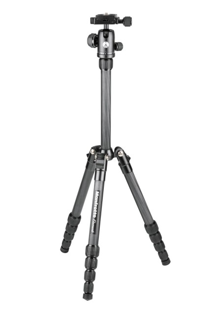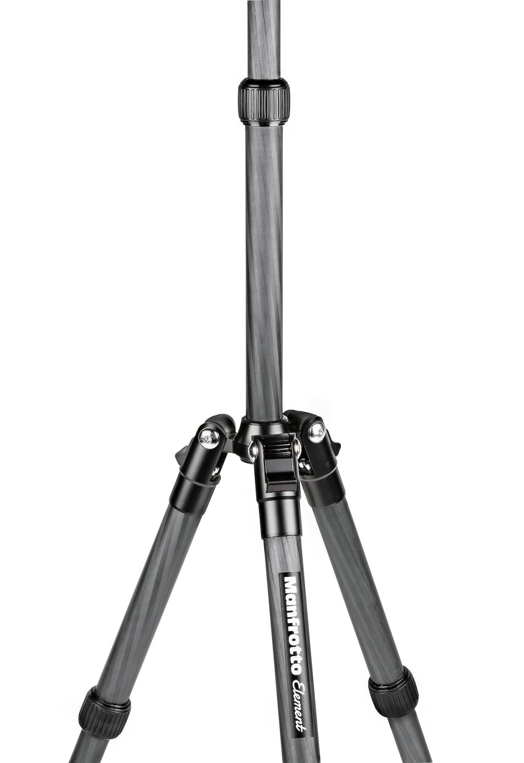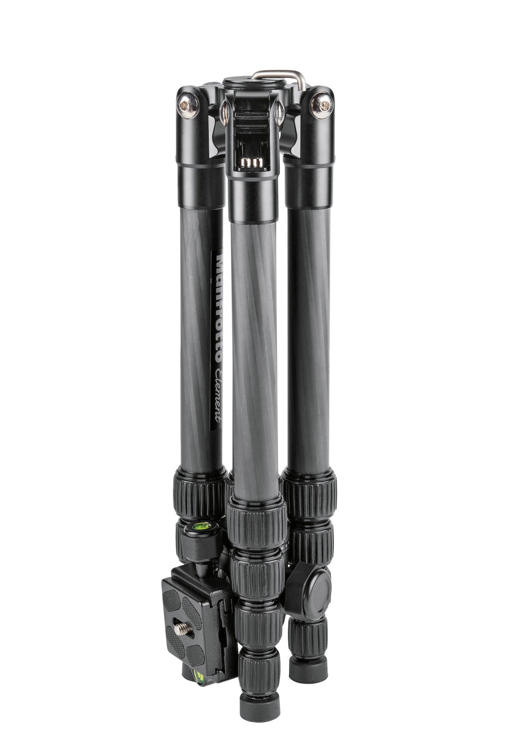 A Manfrotto MKELES5CF-BH Element Traveller kis állvány gömbfejjel egy rendkívül hordozható, 1,05 kg-os utazási készlet, amely 32 cm-re összecsukható, 143 cm-re kihúzható, és 6 kg-os CSC terhelést képes megtartani sima alumínium Arca-típusú gömbfejjel, független 360°-os panoráma rögzítéssel, csavaros rögzítésű lábakkal, három lábszöggel és teleszkópos középoszloppal – párnázott hordtáskával együtt.