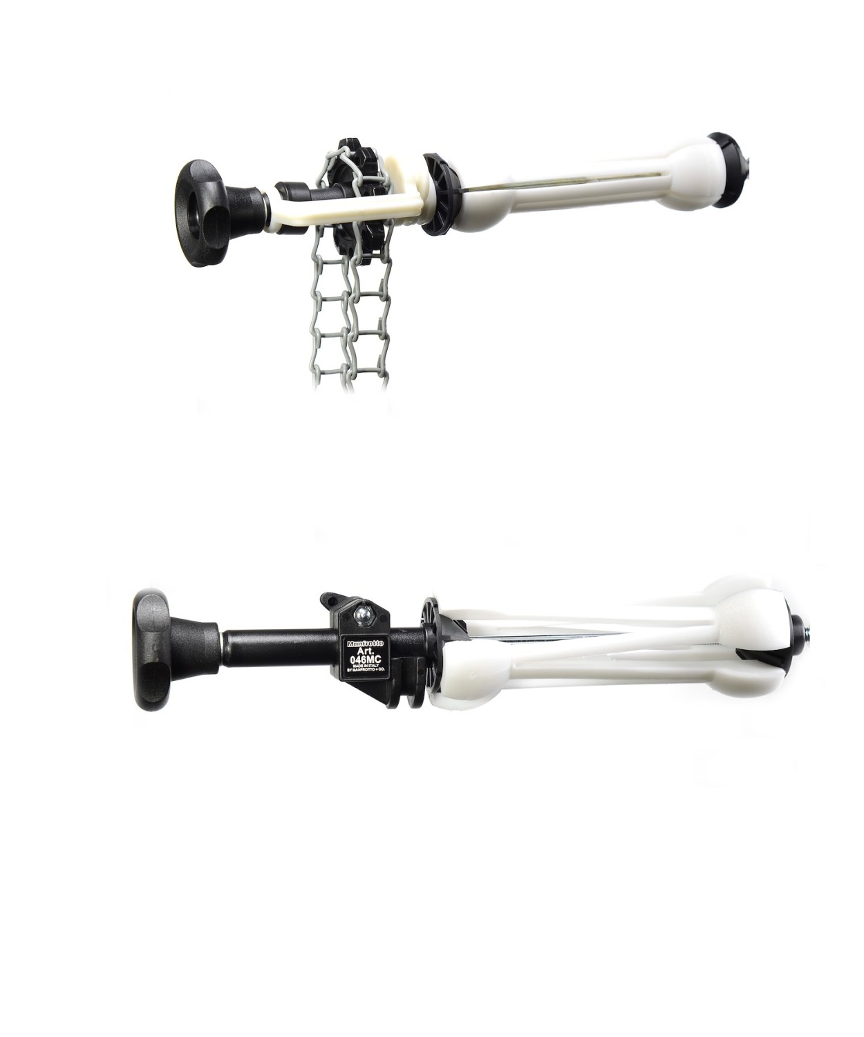 A Manfrotto 046MCG Expan Set az iparági szabványnak megfelelő háttérpapír-meghajtó rendszer, amelyet egy tekercs zökkenőmentes háttérpapír könnyű és pontos vezérlésére terveztek. Egyszerűen helyezze be a két bővíthető Expan egységet a papírtekercs magjába, rögzítse őket a háttértartó állványokra vagy kampókra, és a mellékelt szürke fémlánccal és ellensúllyal gyorsan feltekerheti vagy leengedheti a papírt – mindezt anélkül, hogy állítania kellene az állványok magasságát.