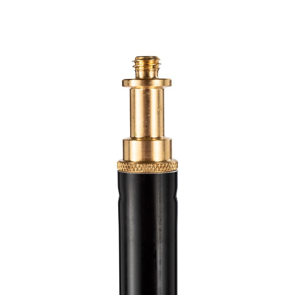 A Manfrotto 099B hosszabbító rúd bármely 5/8 hüvelykes baby aljzatba becsúszik, és egy csavaros gallérral rögzíthető, így teljes magassága 235 cm. Három alumínium szakasz simán kinyitható, ergonómikus gumi markolatokkal, míg a fekete porfesték bevonat ellenáll a karcolásoknak és a tükröződésnek. A tetején található 3/8 hüvelykes-16-os hímcsatlakozó szabványos csapos rögzítésekhez alkalmas – tökéletes hajfényekhez, felülnézeti termékfotókhoz vagy karokhoz. Mindössze 600 g súlyával és 90 cm-es összecsukott hosszával ez a megoldás ideális kis és közepes méretű szerelvények emelésére teljes állvány nélkül, portréstúdiókban, videóforgatásokon vagy helyszíni felszerelésekben.