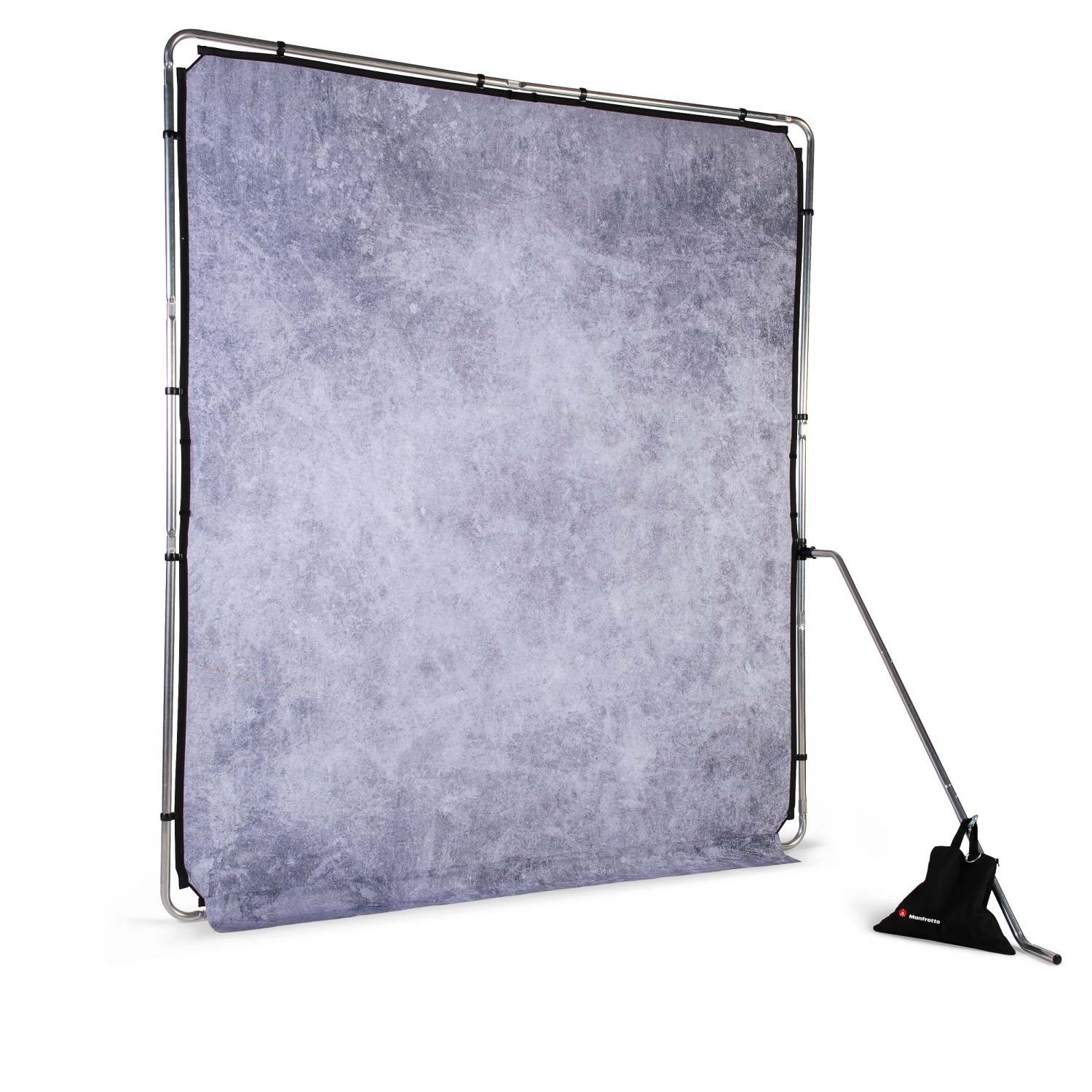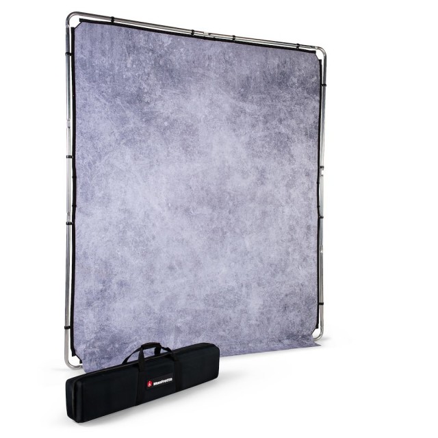 A Manfrotto LL LB7930 EzyFrame Vintage Background 2x2,3 m Concrete egy nagy méretű, összecsukható fotóháttér-készlet, amely tartós alumínium kerettel és sötét, horpadásálló poliészter felülettel rendelkezik.