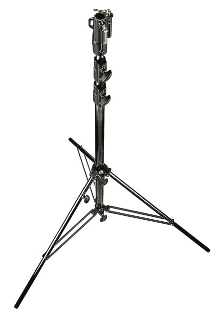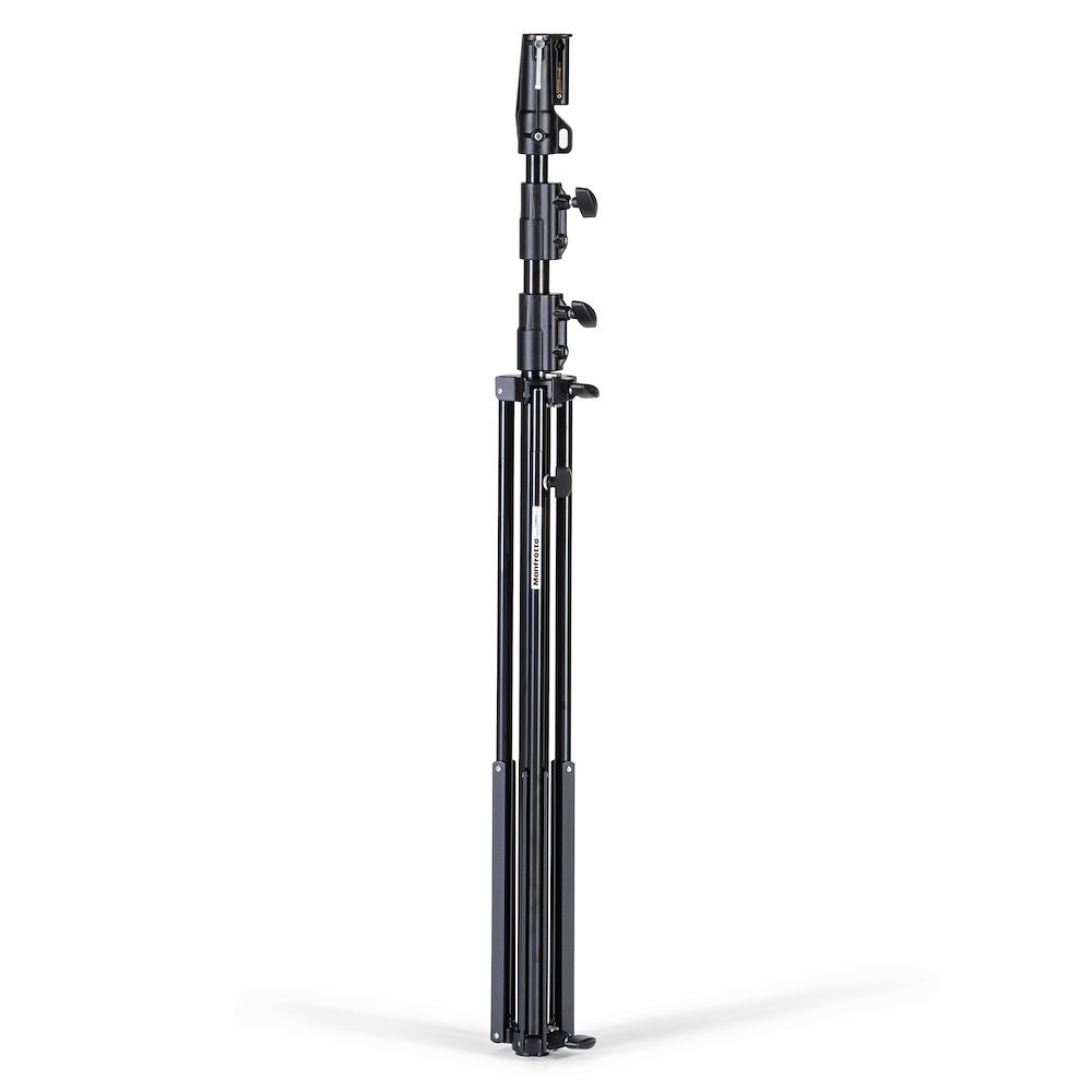 A Manfrotto 126BSU fekete acél nagy teherbírású állvány egy 8,3 kg-os, 3 részes junior állvány, amely 131–333 cm-re nyújtható, 40 kg teherbírással (3 kg maximális kinyújtásnál), kettős merevítésű lábakkal, szintező lábbal, univerzális 28 mm-es aljzattal + 16 mm-es csapszeggel + 3/8"-es csavarfejjel és ajánlott kerekekkel (109/110/110G) rendelkezik, amely sziklaszilárd, helyszínen használható támasztást biztosít nagy HMI, LED vagy boom berendezésekhez.