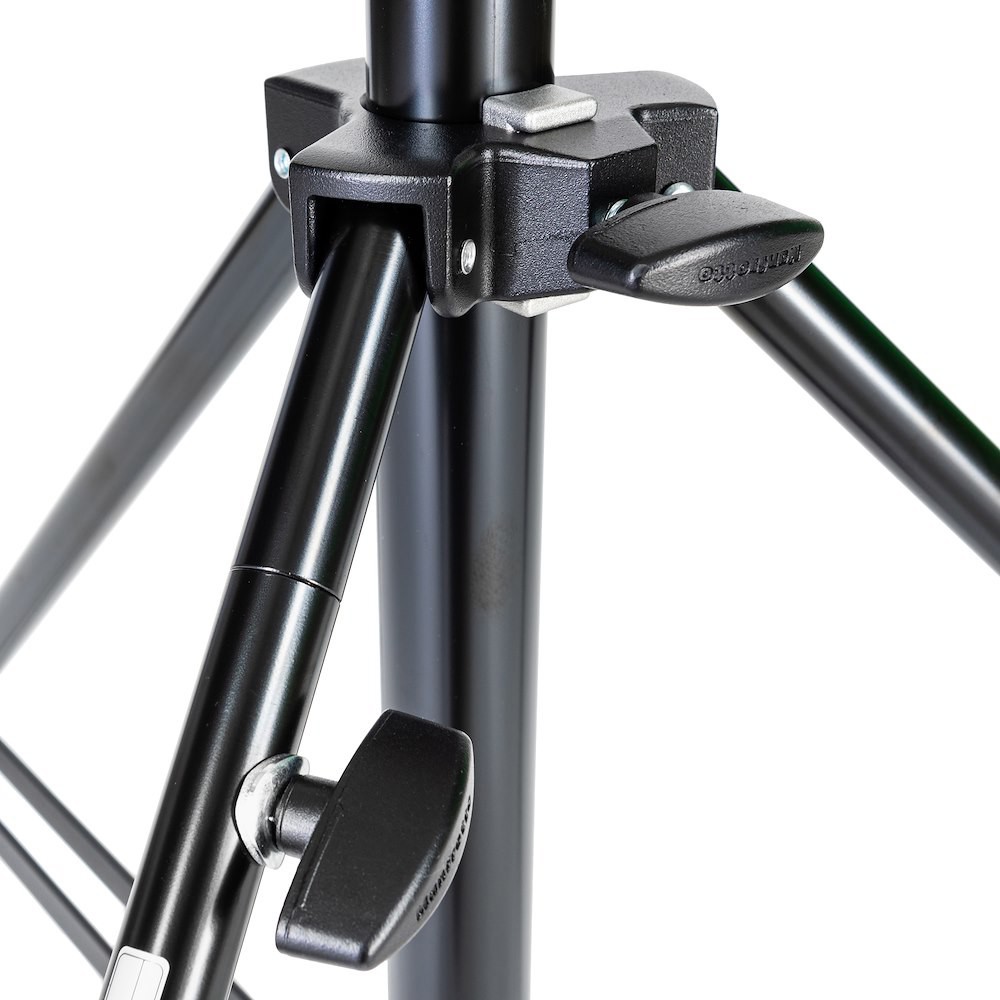 A Manfrotto 126BSU olasz acélmunkásmesterséget és professzionális szintű stabilitást ötvöz egy 8,3 kg-os, fekete porfestett vázban. Három robusztus szakasz (40/35/30 mm) gallérzárakkal 333 cm maximális magasságig állítható, míg a kettős merevítésű kerek lábak (Ø22 mm) és a 124 cm-es széles talp biztosítja a 40 kg-os terhelés alatti nulla hajlítást (3 kg teljesen kinyújtva). Az univerzális 14-es típusú fej 28 mm-es női aljzattal, 16 mm-es biztonsági csapszeggel és 3/8"-16-os csavarral rendelkezik, amely bármilyen szabványos rögzítőelemhez illeszkedik. Az egyetlen szintező láb ±15°-ban állítható lejtőn, az opcionális kerekek (109/110G) pedig növelik a mobilitást. 131 cm-es összecsukott magasságával ez a legjobb megoldás film-, televíziós vagy stúdiócsapatok számára, akiknek rendkívüli magasságra, erőre és gyors áthelyezhetőségre van szükségük.