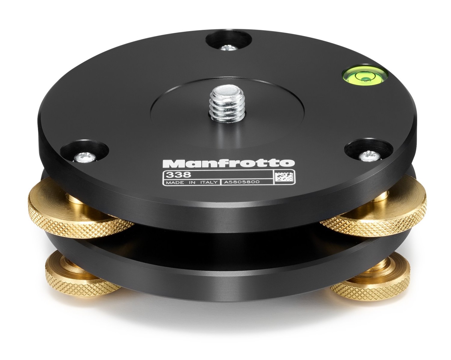 A Manfrotto 338 szintezőalap lehetővé teszi a kamera pontos szintezését olyan állványokon, amelyek nem rendelkeznek beépített szintezőmechanizmussal. Három beállító gombbal, rögzítőgyűrűkkel és beépített vízmértékkel rendelkezik.