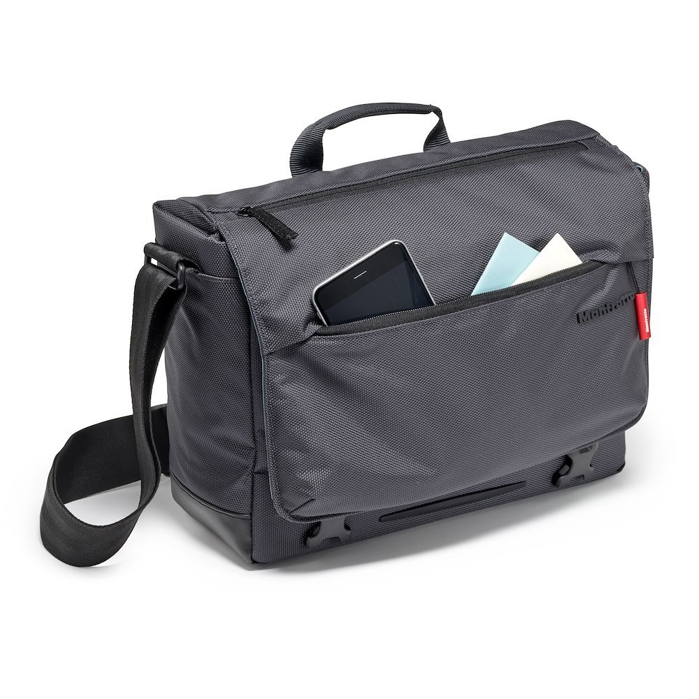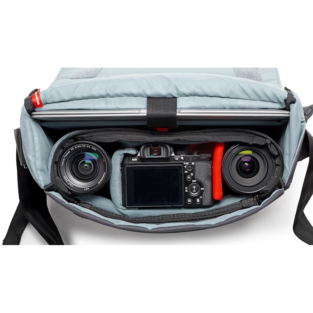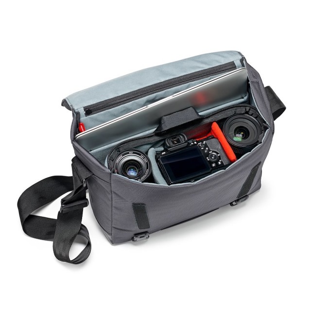A Manfrotto MB MN-M-SD-10 Manhattan Speedy-10 Messenger egy 880 g-os szürke ballisztikus nylon városi táska, kivehető Flexy Camera Shell betéttel (26×10×19 cm), 12 hüvelykes laptop tok, rejtett állványfedél, stabilizáló pánt és vízlepergető bevonat – alkalmas prémium CSC (A7II + 2 objektív) vagy DJI Mavic készletekhez a napi ingázáshoz vagy városi fotózásokhoz.