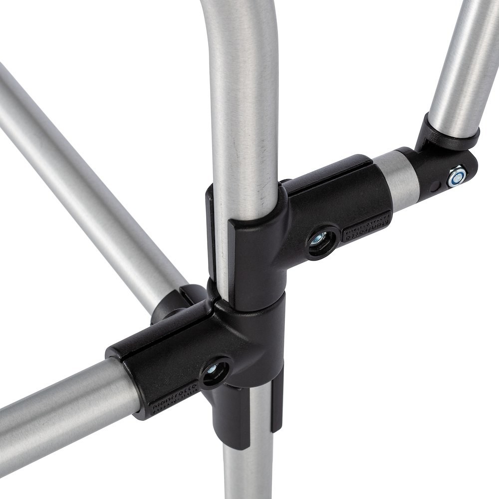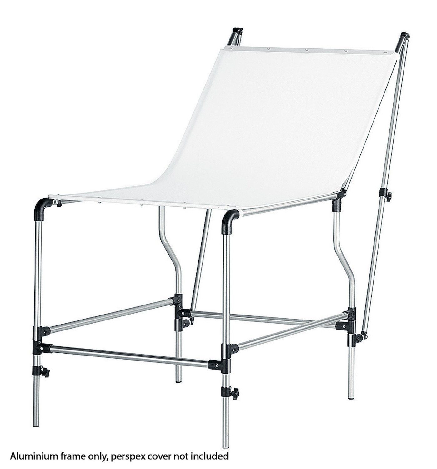 A krómozott acélból készült asztal hosszú élettartamot és megbízható támasztást biztosít. Állítható háttámlával és állítható elülső lábakkal rendelkezik, amelyek lehetővé teszik a fotósok számára a szögek és a világítás finomhangolását a zökkenőmentes háttérátmenetek és a kontrollált tükröződések érdekében.