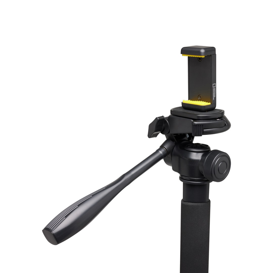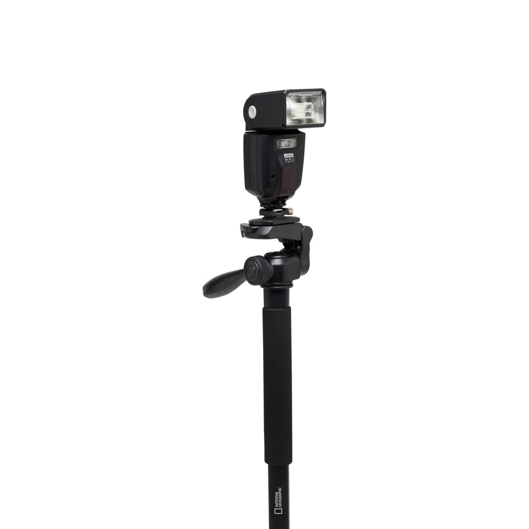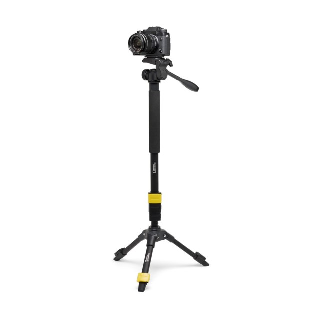 A Manfrotto NGPM002 National Geographic Photo 3-in-1 monopod egy könnyű, 860 g-os alumínium rendszer, amely bármilyen felvételhez alkalmazkodik. Négy flip-lock szakaszával lenyűgöző 189 cm-es magasságig nyújtható, így felülnézeti felvételek készítésére is alkalmas, míg a kétrészes lábakkal ellátott, levehető állványalap sziklaszilárd stabilitást biztosít, vagy kompakt asztali állvánnyá alakítható makró- vagy videohívásokhoz. A 3 irányú forgó/dönthető fej saját fejlesztésű 1/4"-20 gyorskioldó lemezzel, független forgásgátlóval és 90°-os függőleges dönthetőséggel rendelkezik a zökkenőmentes portréfelvételekhez. A habszivacs markolat kényelmet biztosít, a mellékelt okostelefon-bilincs (akár 8,4 cm-ig) pedig támogatja a telefonon alapuló tartalomkészítést.