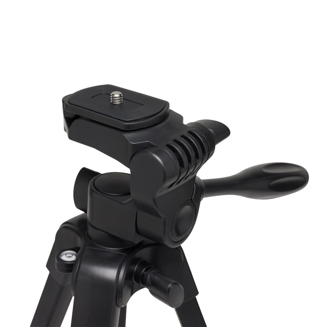 A Manfrotto NGPT001 National Geographic kis állvány 600 g alatti súlyával ötvözi a strapabíró, földszíneket idéző stílust a praktikus teljesítménnyel. Három, felhajtható zárral ellátott lába egy fogaskerékes középoszlop segítségével simán 137 cm-re nyitható, míg a középső szétterítő és a gumi talpak egyenetlen terepen is biztosítják a stabilitást. A háromirányú karos fej független panorámázást, döntést és 90°-os portré forgatást tesz lehetővé, beépített vízmértékkel a pontosság érdekében. A saját fejlesztésű gyorskioldó lemez (1/4"-20) és a mellékelt okostelefon-rögzítő (legfeljebb 8,4 cm széles) kamerák vagy telefonok rögzítésére alkalmas. Összecsukva ~55 cm-es és 596 g-os súlyával ideális all-in-one megoldás utazáshoz, túrázáshoz vagy alkalmi tartalomkészítéshez – párnázott hordtáskával együtt.