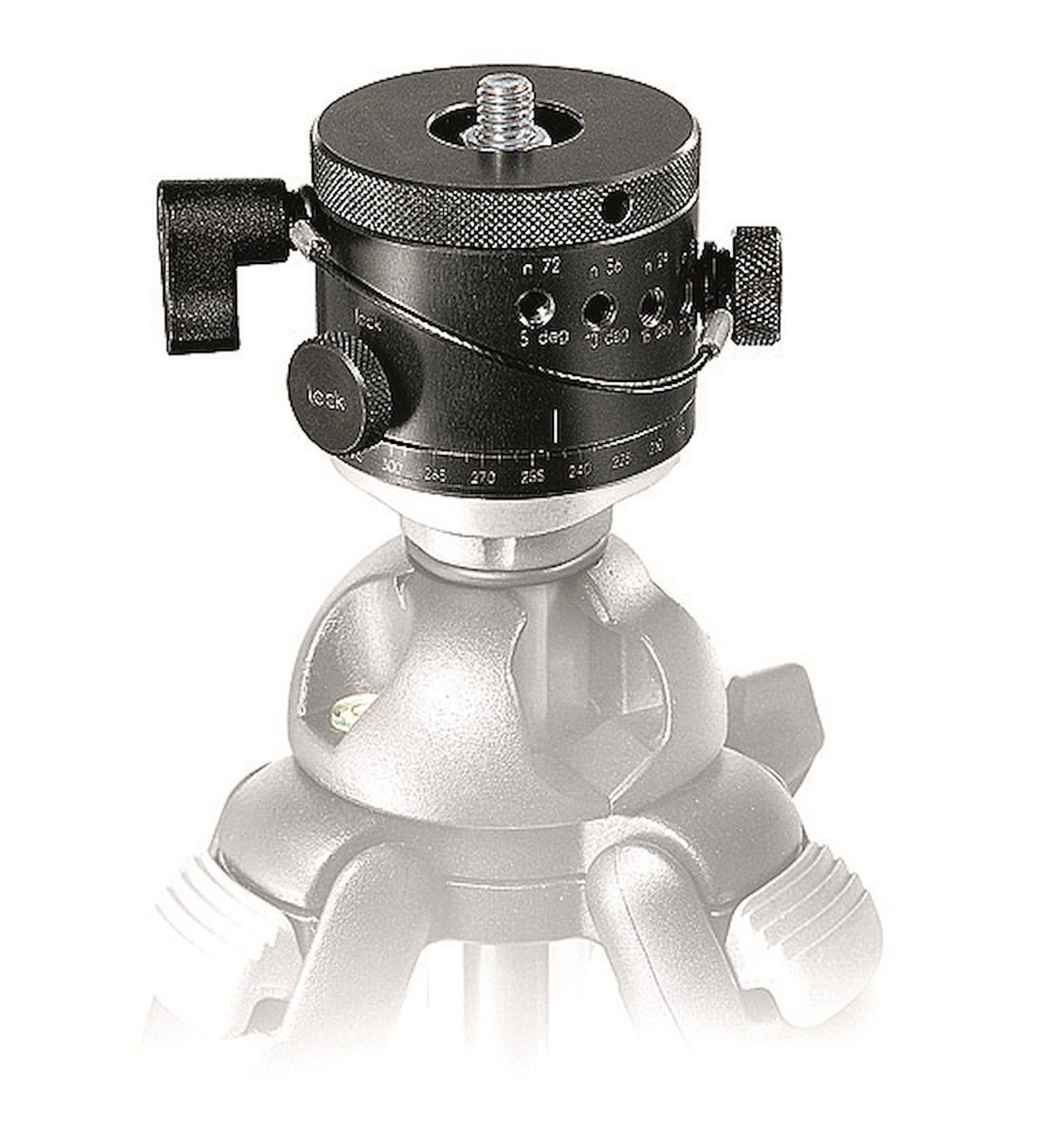 A Manfrotto 300N panorámakép-forgató egység biztonságos reteszelő és rögzítő mechanizmusokkal rendelkezik, amely lehetővé teszi a pontos 360°-os forgatást egymást követő, állandó szögű panorámaképek vagy tárgyfotók készítéséhez. Kompatibilis különböző gyorskioldó, csúszó vagy rögzített lemezekkel és fejekkel, beleértve a fogaskerékes, gömbös vagy háromirányú típusokat, és akár 14 kg-os terhelést is elbír, miközben sima, pontos működést biztosít.