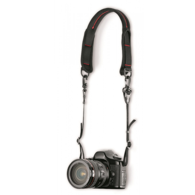 A Pro Light Camera szíj kényelmes megoldást kínál kamerája szállítására. Akaszthatja a nyakába, vállra vagy a speciális csatokkal Pro Light hátizsákra is csatolhatja.