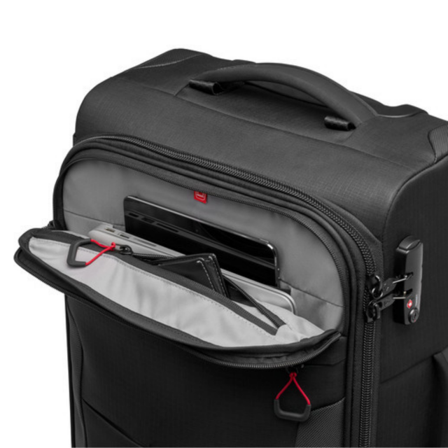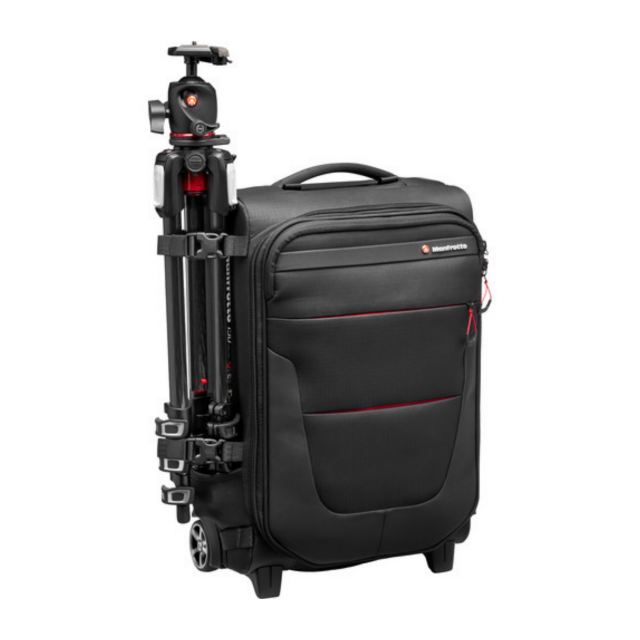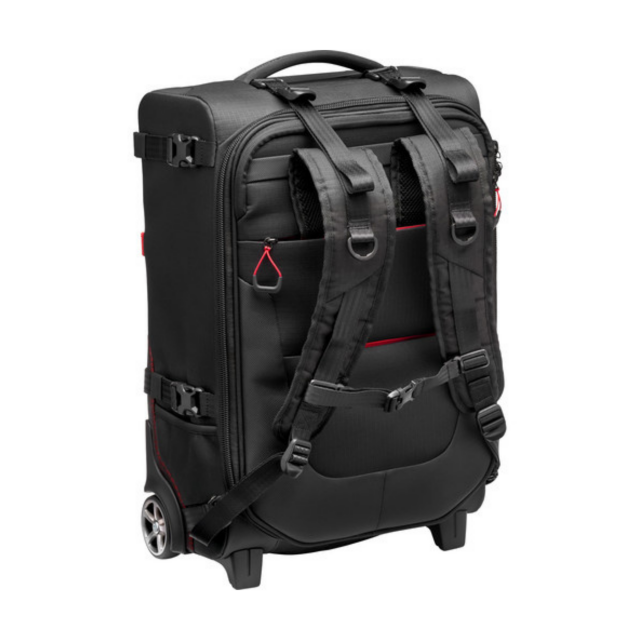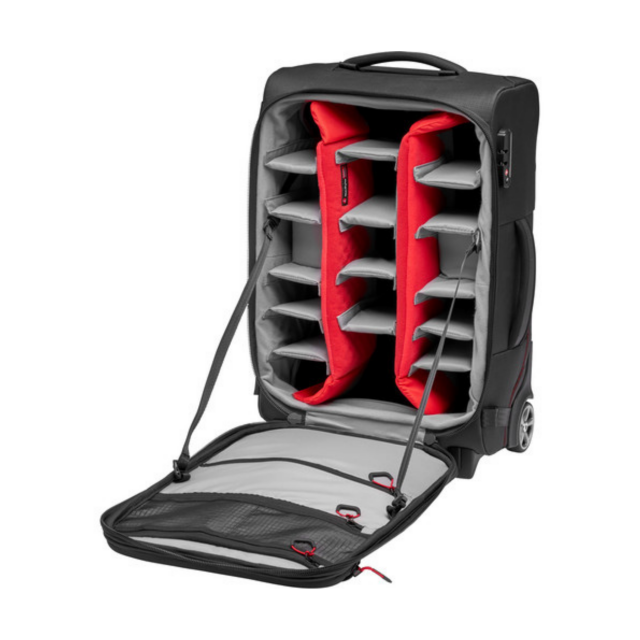 Hordozza a Pro Light Reloader Switch-55 hátizsákot/görgőt az oldalsó és felső fogantyúkkal, görgesse a két hátsó szállítókeréken, vagy viselje a párnázott vállpántok és a szegycsontpánt segítségével. Ezek a kerekek a felhasználó által szervizelhetőek, a biztonság érdekében pedig egy TSA által jóváhagyott, beépített kombinációs cipzárral ellátott cipzárzárral rendelkezik. Az időjárás elleni védelem érdekében a táska kihajtható esővédővel rendelkezik. Külső csatlakozókat biztosítanak állvány vagy egyéb felszerelés rögzítéséhez. A világosszürke belső szövet megkönnyíti a felszerelés megtalálását gyenge fényviszonyok között.