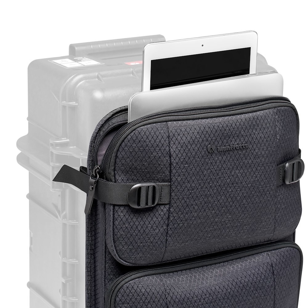 Kiegészítő laptop tok a Manfrotto Pro Light Tough táskákhoz. 4 (vagy 6, a modelltől függően) fém kapcsokkal könnyen rögzíthető. A tartós, állítható pántnak köszönhetően minden a helyén marad. 15 hüvelykes laptopokhoz tervezve. Az elülső zsebekbe további kiegészítők, például töltők, kábelek és más tárgyak is elhelyezhetők. A tok a mellékelt pánttal külön laptop-táskaként is használható. A tok vízlepergető anyagokból készült.