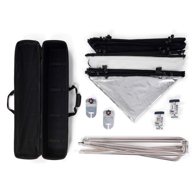 Könnyen hordozható fix vázas készlet cserélhető szövetekkel a könnyű munkához. A kiváló minőségű, könnyű alumíniumkeret könnyű kezelhetőséget tesz lehetővé. Sokoldalúan használható fotókhoz és videókhoz.