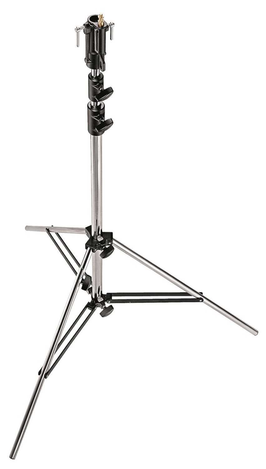 A Manfrotto 007CSU Steel Senior Stand egy professzionális, nagy teherbírású világítási állvány, amely krómozott acélból készült, és maximális stabilitást és biztonságot biztosít nehéz világítási berendezések támasztásához stúdióban vagy kültéri környezetben.