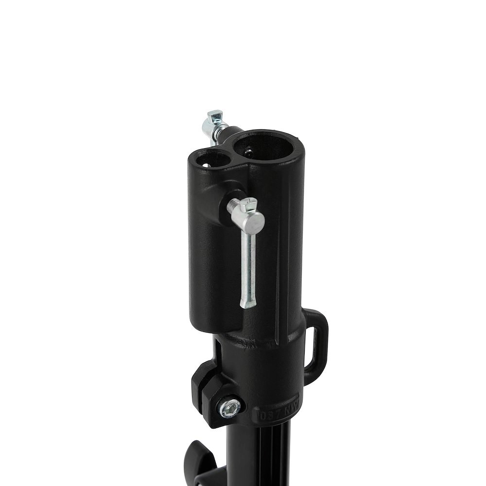 A Manfrotto 087NWSHB egy nagy teherbírású, rövid változatú Wind Up állvány, amely robusztus, fekete krómozott acélból készült, és lenyűgöző magasságot, kivételes teherbírást és sima fogaskerék-működtetést kombinál. A szabadalmaztatott, önzáró hajtókarral ellátott felhúzható mechanizmusnak köszönhetően minimális erőfeszítéssel és hirtelen leesés kockázata nélkül biztonságosan és pontosan emelhet vagy engedhet le akár 30 kg-os terheket is. A mindössze 155 cm-es kompakt összecsukott hosszúsága ellenére három szakaszban és két emelővel maximális magassága 276 cm-re növelhető. Stílusos fekete cink bevonattal és krómozott acél oszlopokkal rendelkezik, és tartalmaz egy 28 mm-es (1-1/8″) női Junior csatlakozót és egy 16 mm-es (5/8″) férfi Baby csapszeget, így teljes mértékben kompatibilis a professzionális világítási és rögzítő berendezésekkel.