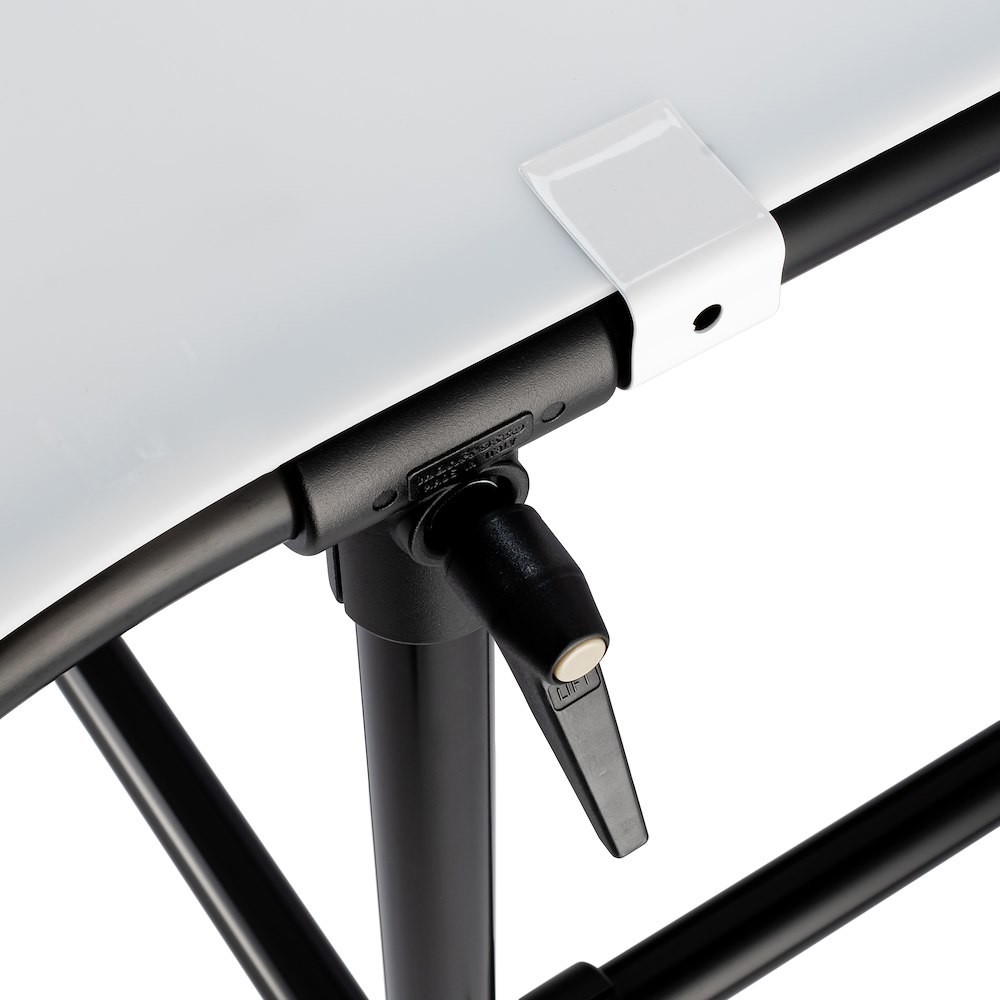 A Manfrotto 220B az iparági szabványnak megfelelő, nagy formátumú csendéletasztal, amelyet professzionális termék- és e-kereskedelmi fotósok számára terveztek. Hatalmas, 200 × 122 cm-es fekete alumíniumcső vázán egy sima, fehér, áttetsző Perspex panel található, amelyet alulról vagy hátulról meg lehet világítani, hogy tiszta, magas kontrasztú háttér vagy lágy, árnyékmentes megvilágítás jöjjön létre. A hátsó panel vízszintesből teljesen függőleges (193 cm magas) és bármilyen közbülső szögbe dönthető, így lapos felvételektől drámai felülnézeti termékfotókig minden lehetséges. A 15 kg-os teherbírás könnyedén elbír nehéz üvegárukat, elektronikai eszközöket vagy több tárgyat, míg a mellékelt tépőzáras szalagok a helyükön tartják a háttérrel vagy a kellékekkel. Opcionális kerekek (165 vagy 109) hozzáadhatók a stúdióban való könnyű áthelyezéshez.