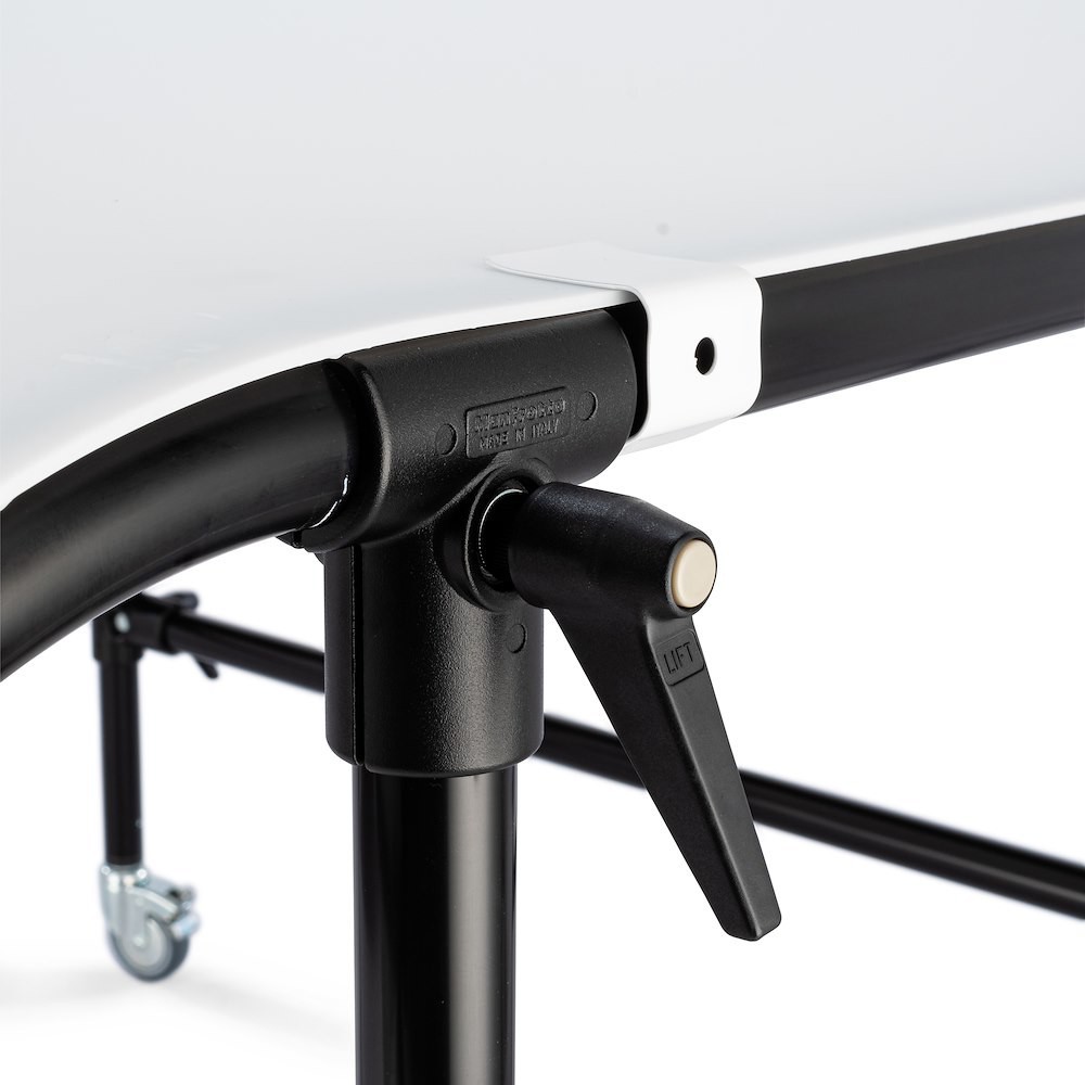 A Manfrotto 220B Black Still Life Table egy professzionális, 200 × 122 cm-es fotózási asztal, amelynek jellemzői: zökkenőmentes, áttetsző Perspex panel, szerszám nélküli összeszerelés, állítható háttámla (akár 193 cm-es függőleges állásig), 15 kg teherbírás és opcionális kerekek – a tökéletes háttér- vagy elülső megvilágítású, hibátlan termék-, étel- és csomagfotózáshoz.