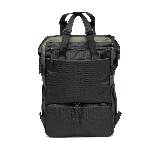 A Manfrotto Street Convertible Tote egy multifunkcionális megoldás a fényképezőgép, a laptop és a személyes holmik szállítására. Szükség szerint gyorsan és egyszerűen átalakítható hátizsákká. Könnyedén húzza ki a külön hátsó zsebben található két rejtett vállpántot, és csíptesse be őket a hátizsák alatti fogantyúkba. A vállpántok párnázottak, hosszuk állítható a kényelmes viselet érdekében.
