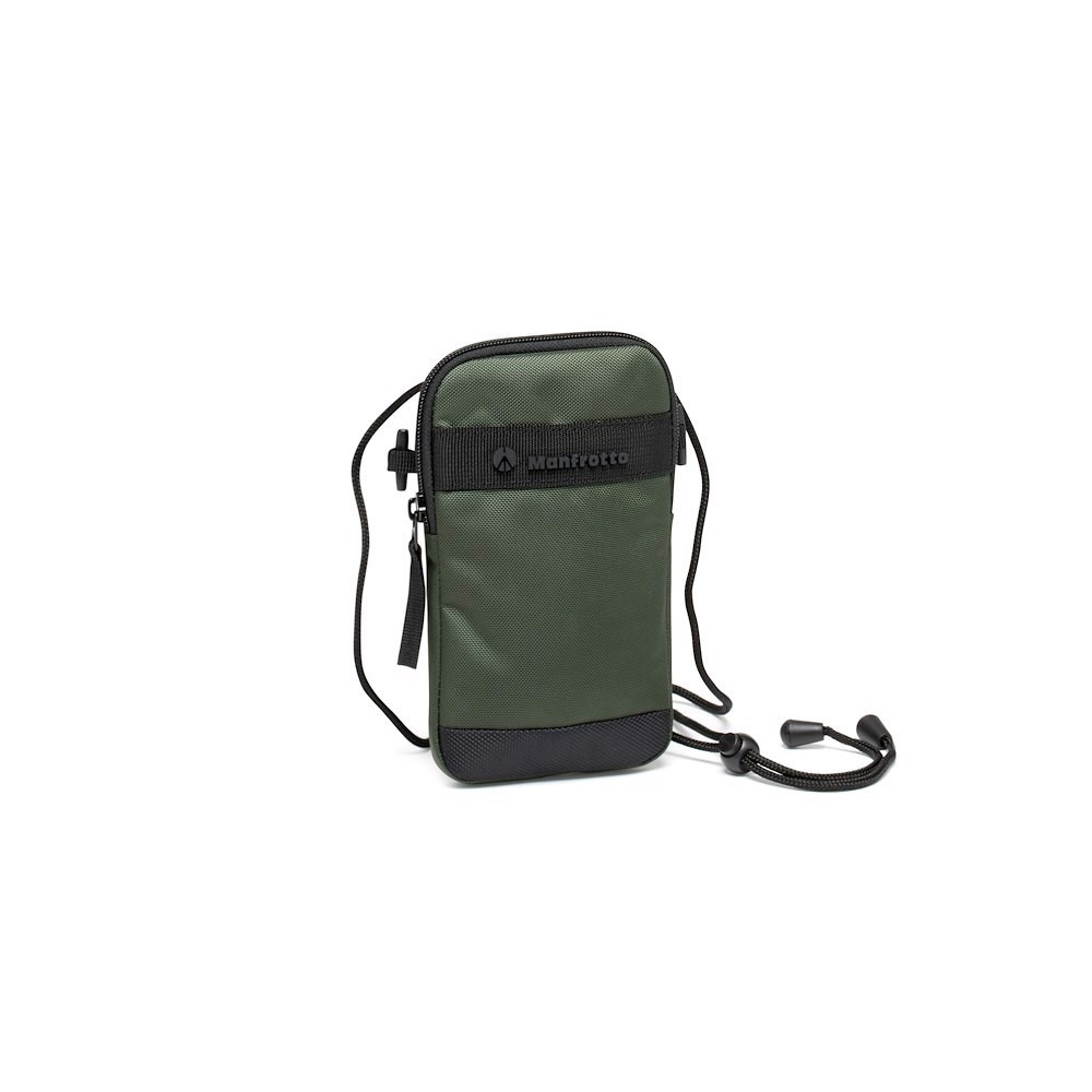 A Manfrotto MB MS2-CB Street Crossbody Pouch egy 1 literes, sötétzöld, vízlepergető mini válltáska (13×1,5×20 cm) kihúzható, állítható húzózsinórral, mágneses külső zsebbel, két belső oldalsó zsebbel, gumiszalaggal ellátott kulcstartóval és kapcsokkal, amelyekkel a Street Slim hátizsákhoz vagy a Convertible Tote táskához rögzíthető – tökéletes 6,8 hüvelykes okostelefonok és a mindennapi szükségleti cikkek tárolására, mindössze 100 g súlyával.