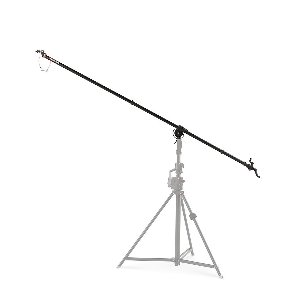 A Manfrotto 025B Black Light Boom egy professzionális, háromrészes stúdiókar (maximális kinyúlás 210 cm, teljes kinyúlásnál 5 kg teherbírás), forgó gallérral (19–28 mm-es állványcsövekhez illeszkedik), ellensúlyokkal, kábelkapcsokkal és forgó 5/8" baby stud + 3/8" és 1/4" menetekkel – összecsukható, mindössze 71 cm (28") hosszúságú, így könnyen hordozható.
